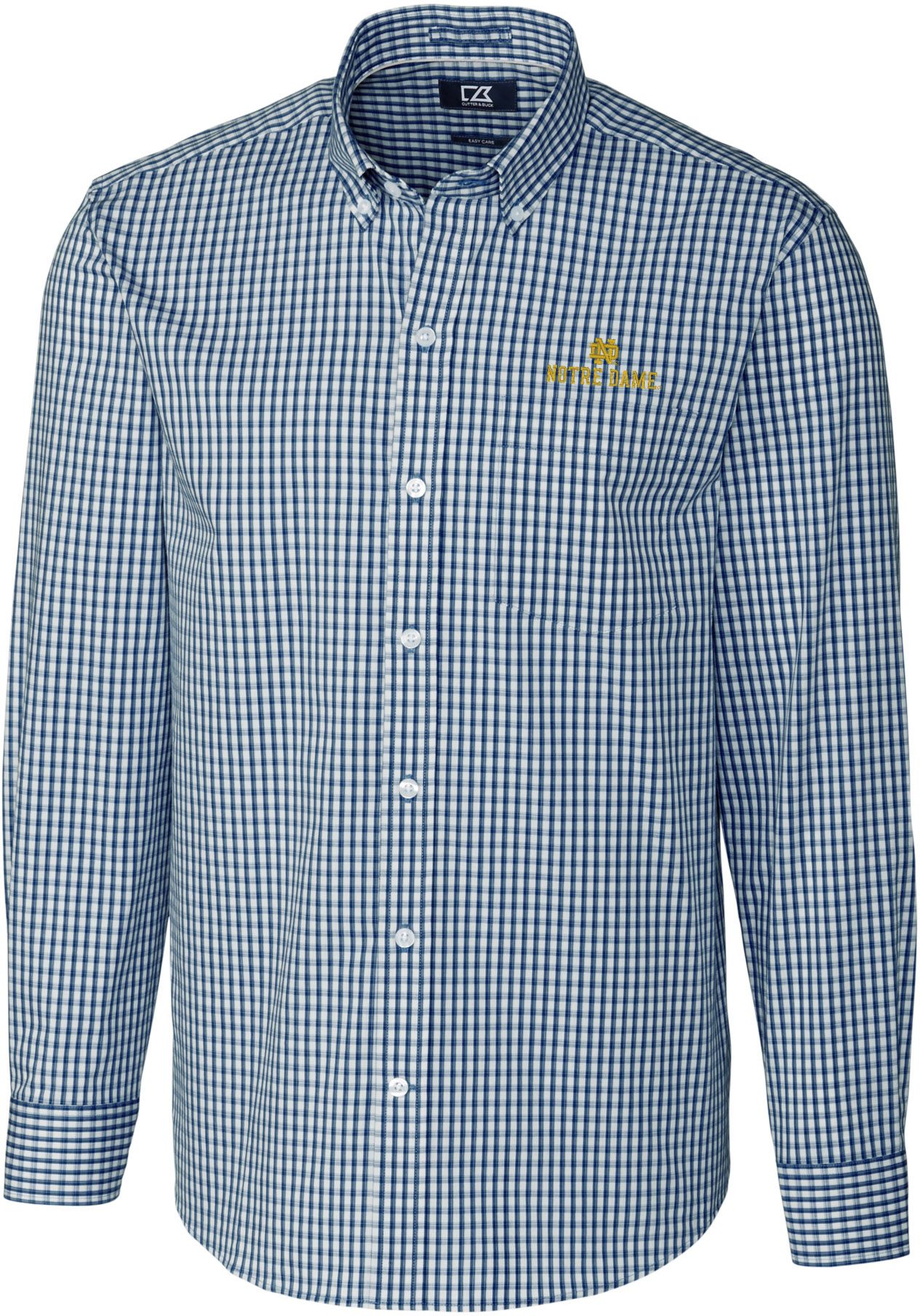 Cutter & Buck Men's Notre Dame Fighting Irish Navy Stretch Gingham Long Sleeve Button Down Shirt