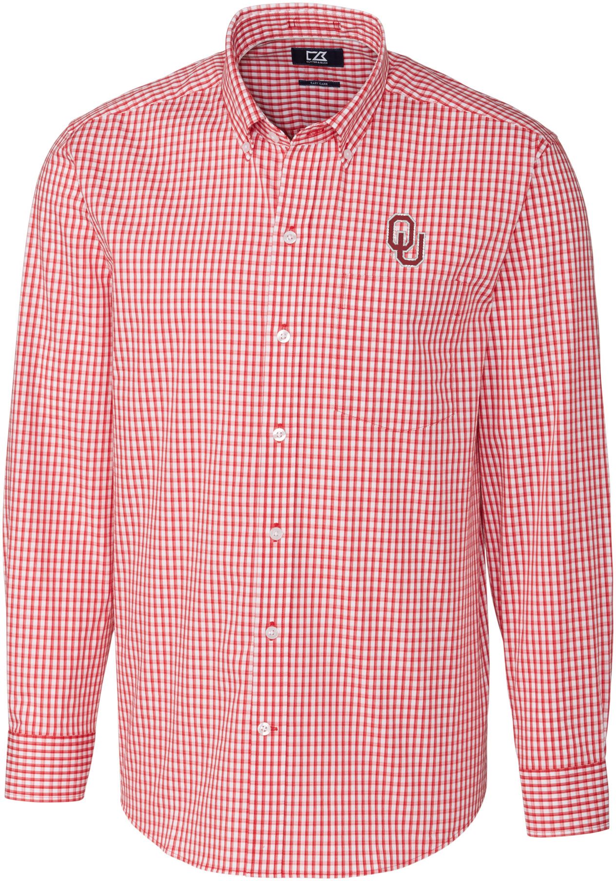Cutter & Buck Men's Oklahoma Sooners Crimson Stretch Gingham Long Sleeve Button Down Shirt