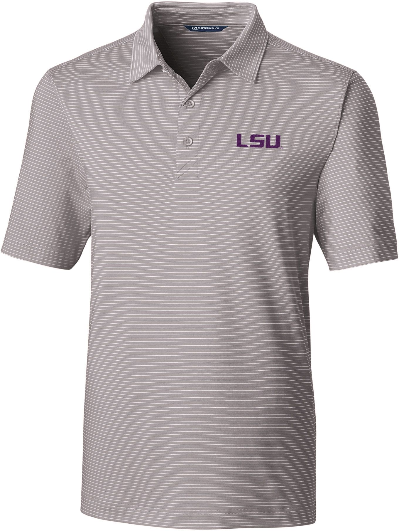 Cutter & Buck Men's LSU Tigers Grey Forge Pencil Stripe Polo