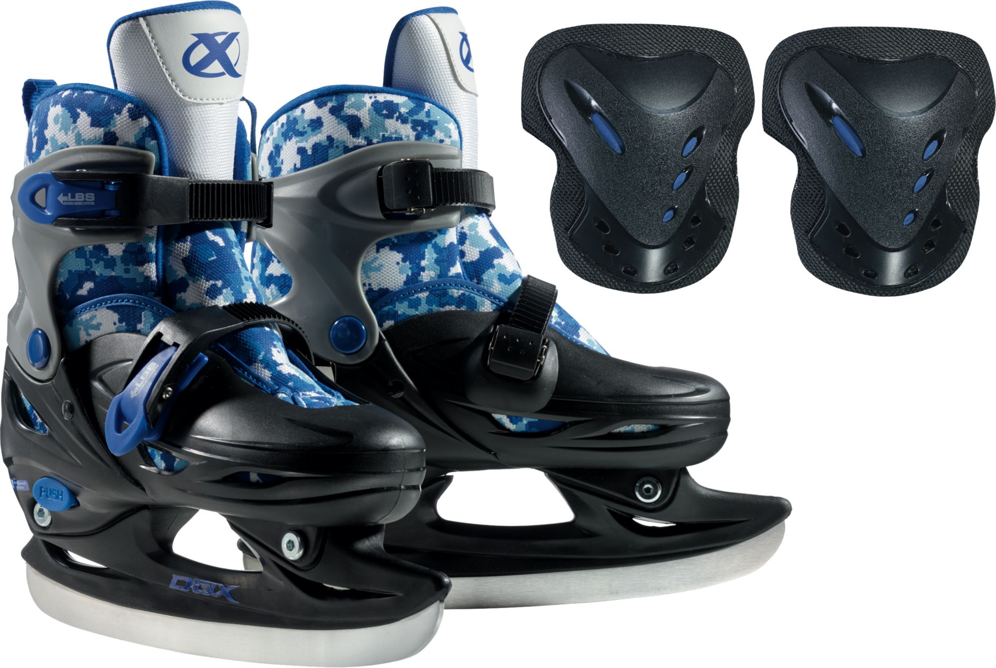 The DBX Adjustable Skates Package is everything you need for your youth to learn to skate. Made with a hard shell boot, this DBX Skate provides protection and support while a padded liner ensures a comfortable fit. With the included carry bag, knee pads and elbow pads, the DBX Adjustable Skates Package has all they need to get to the rink while the skate is adjustable up to five sizes, letting them grow into their skates and the sport.