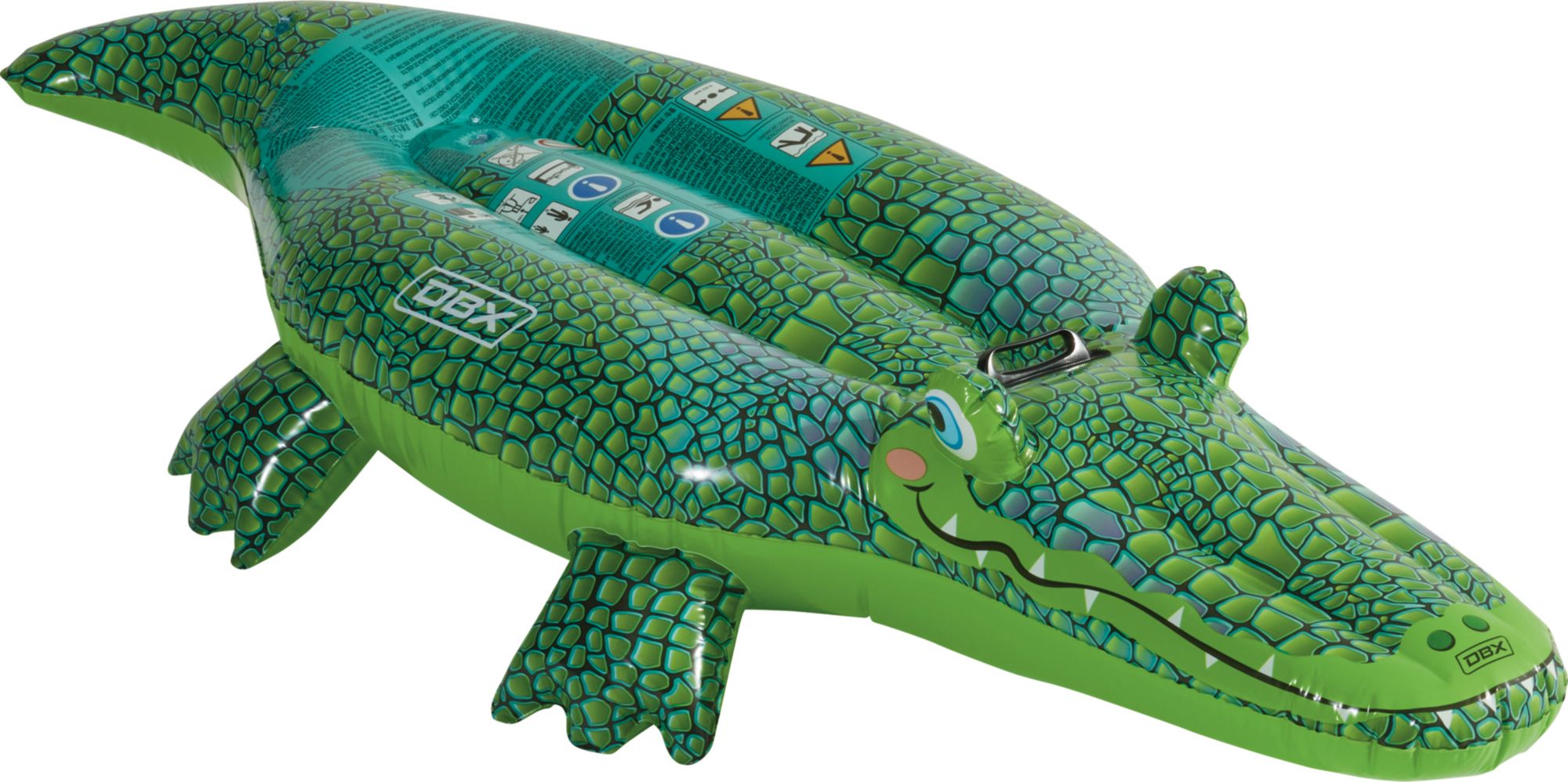 The crocodile float is much larger than I expected which is a good thing because my son is getting bigger. Very easy to blow up. Handles are placed in a tough space for kids to hold onto. All in all a good 20 dollar pool float.