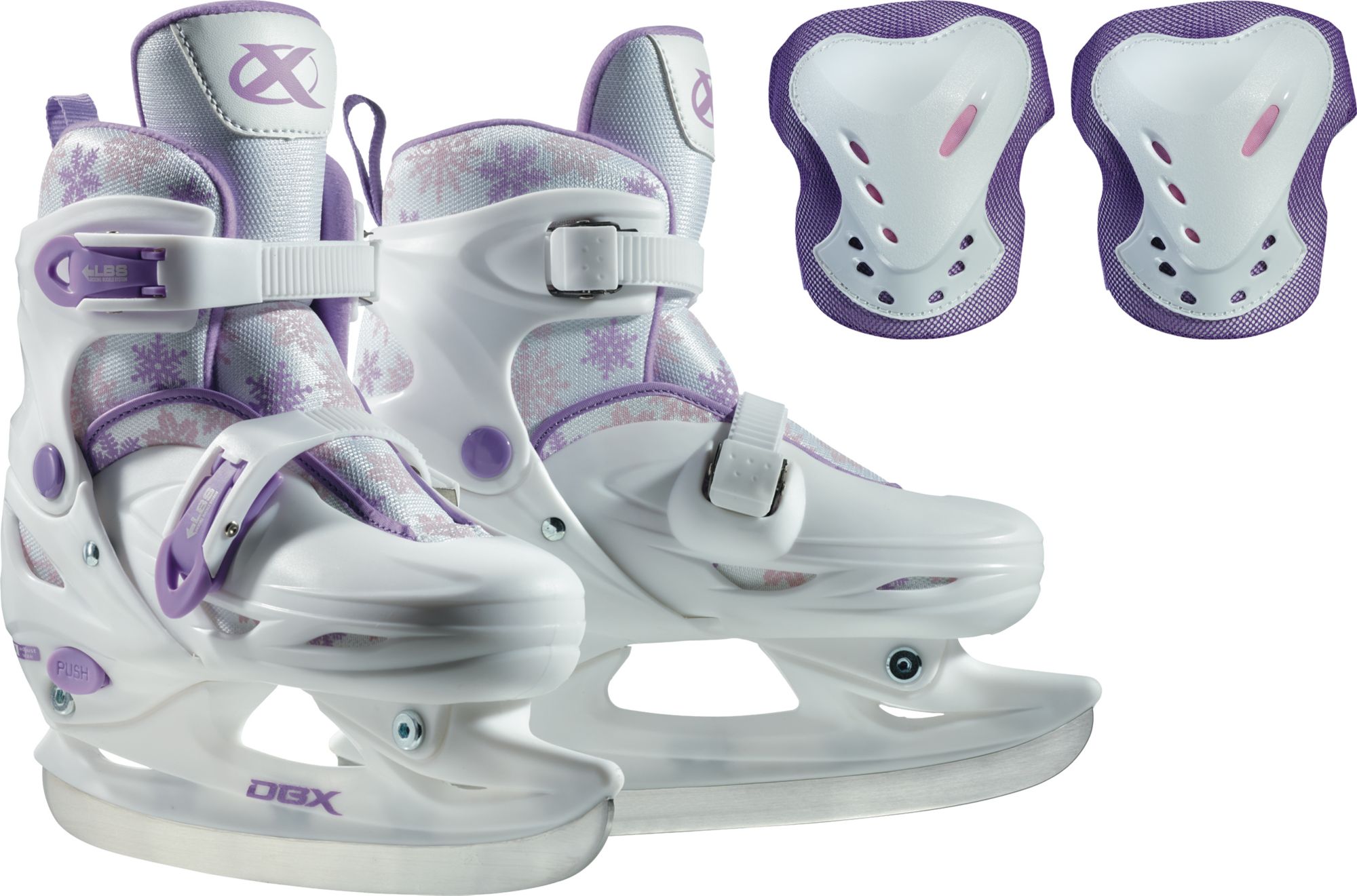 The DBX Adjustable Skates Package is everything you need for your youth to learn to skate. Made with a hard shell boot, this DBX Skate provides protection and support while a padded liner ensures a comfortable fit. With the included carry bag, knee pads and elbow pads, the DBX Adjustable Skates Package has all they need to get to the rink while the skate is adjustable up to four sizes, letting them grow into their skates and the sport.