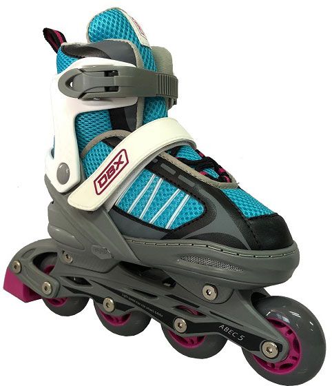 Teach her how to roll through the neighborhood with the DBX® Girls’ Equinox Adjustable Inline Skate Package. Made with a durable composite frame, this kids’ skate can withstand heavy wear and tear. The 64mm wheels with ABEC-5 bearings roll smooth. Designed with expandable sizing, this skate will grow with your little roller. The buckle locking system and power strap offers a secure fit and stability. Wrist, elbow, and knee pads keep her safe.