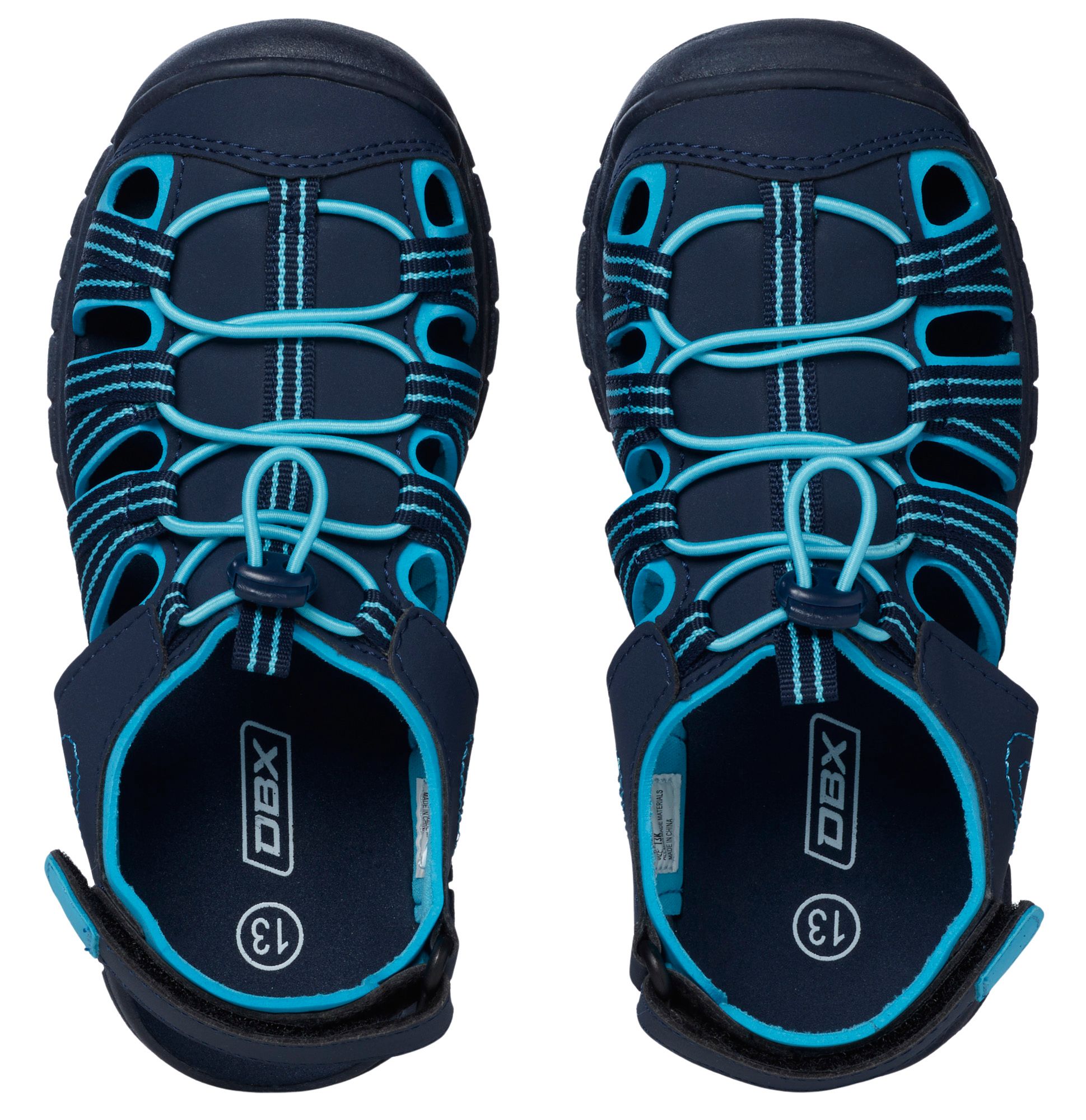 The DBX Kids' Caged Sandals are perfect for young adventurers. Featuring a synthetic PU leather and webbing upper with textile lining, these sandals offer both comfort and durability. The adjustable heel strap and bungee lace closure ensure a secure fit, while the TPR outsole and rubber toe guard provide excellent traction and protection.