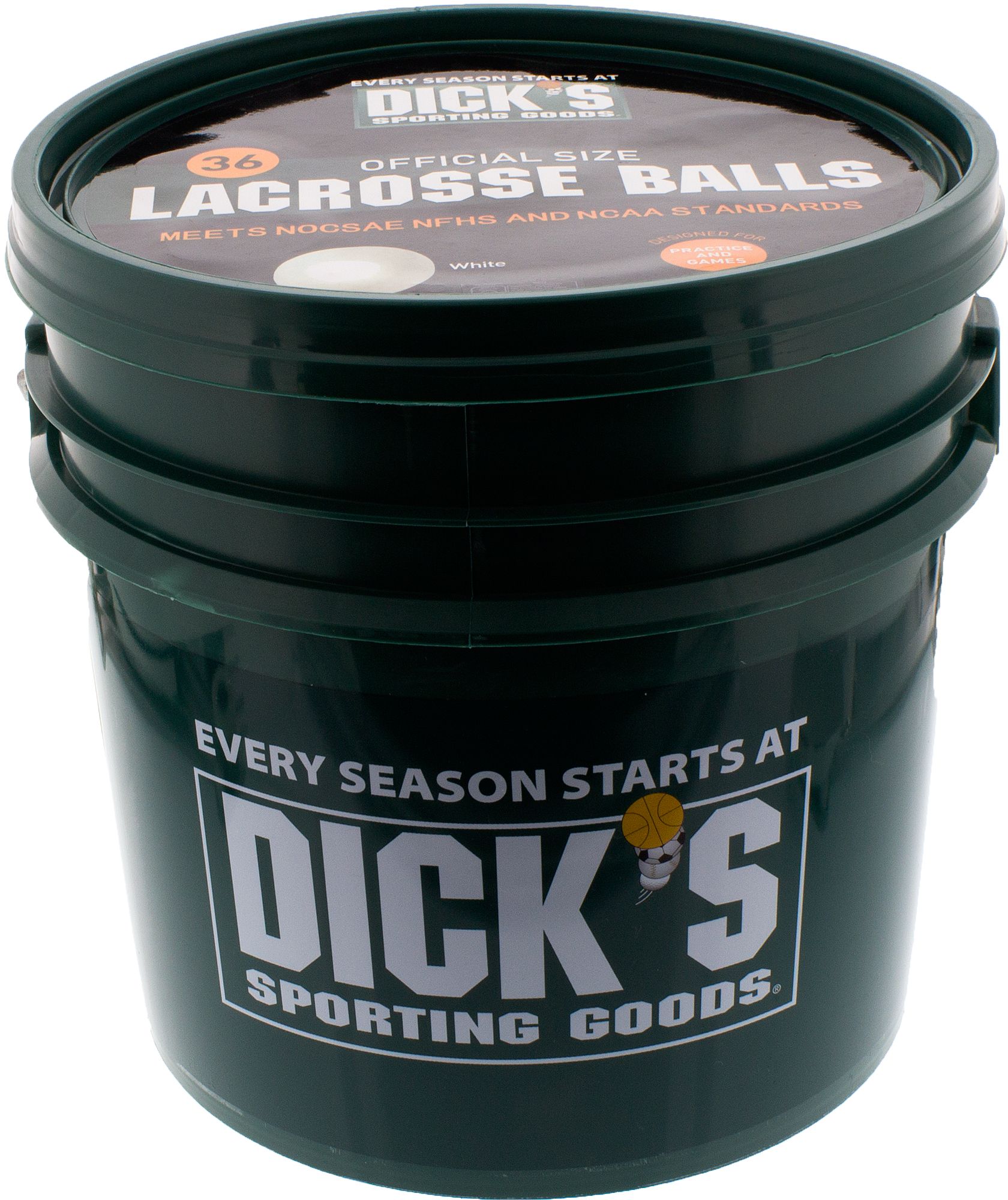For the lacrosse player that doesn't stop, the DICK'S Sporting Goods® Men's/Women's Lacrosse Ball Bucket includes 36 official size and weight lacrosse balls for use in practice or games. Constructed of durable rubber, these balls help enhance your training and improve your shooting, passing and cradling skills on the field. The 2.5-gallon bucket allows easy transport to and from the game. Updated to meet NOCSAE®'s 2017 tolerance changes.