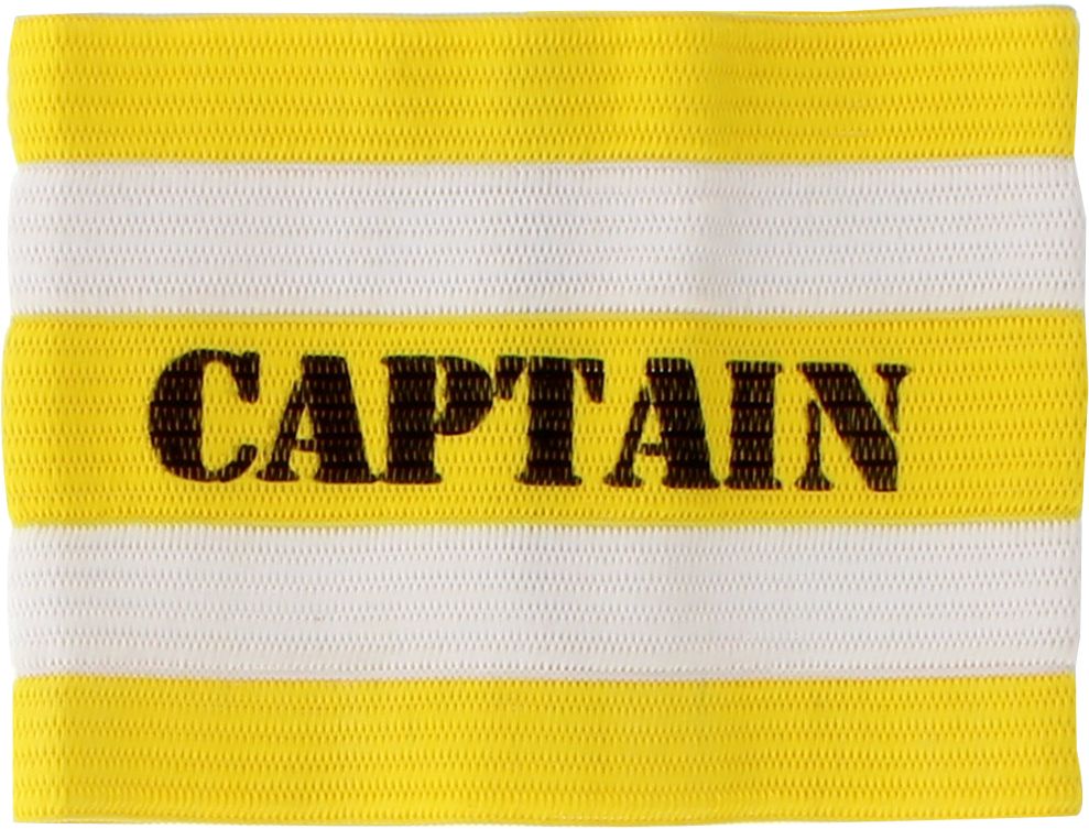 To be worn by the Team Captain during game play Bright striped pattern and ‘CAPTAIN' wordmark across band Elastic material comfortably stretches around your arm for a firm, non-restrictive fit