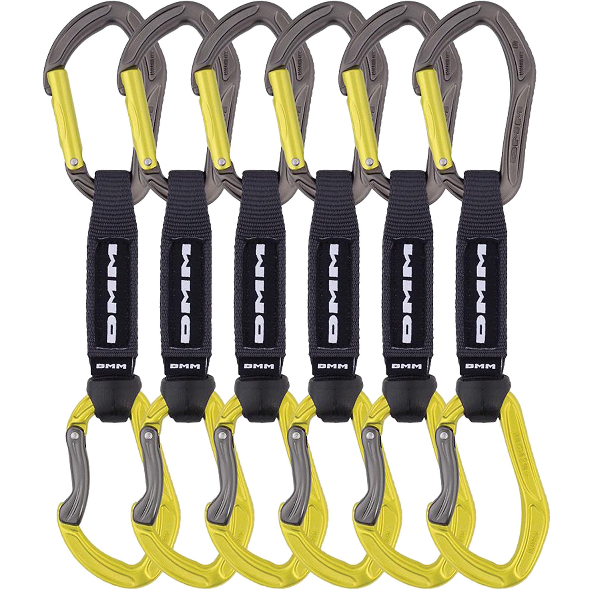 Sport carabiners are mounted on durable nylon to create robust and easily clipped quickdraws