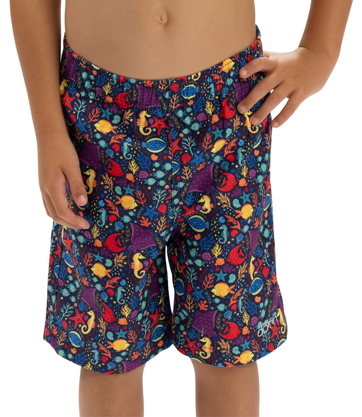 Jump into fun with the Little Dolfin Boys' Little Fish Swim Trunks, featuring a playful print of vibrant sea creatures that are sure to make a splash! Designed for comfort and style, these swim trunks are perfect for beach days, pool parties, or swim lessons. Made from high-quality, quick-drying fabric, they provide all-day comfort and flexibility for active little swimmers. The elastic waistband with an adjustable drawcord ensures a secure fit, allowing for hours of splashing and playing. Plus, you can match with your swim bestie in the Little Dolfin Girls' style for an adorable coordinated look that makes water play even more fun!