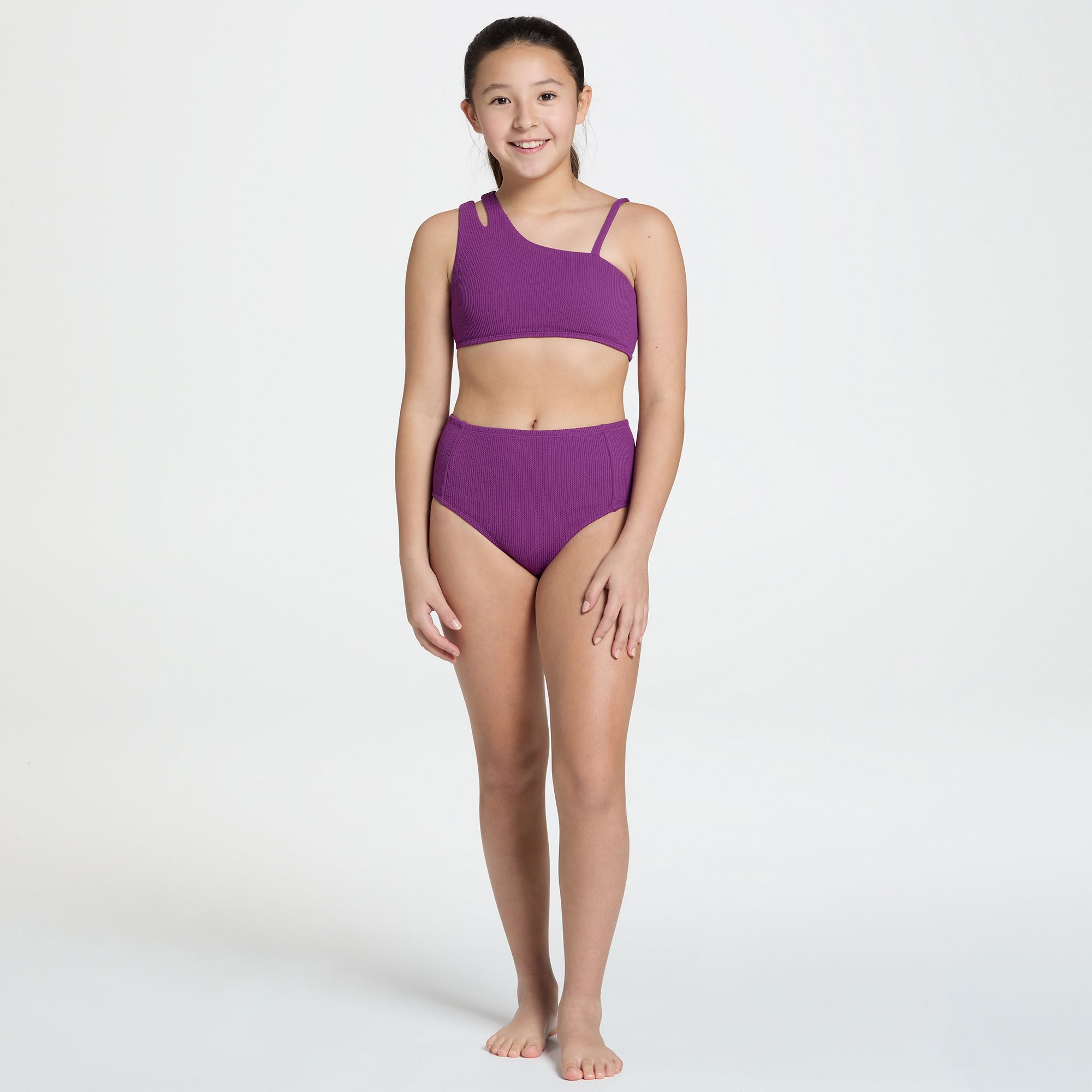 Let her make a splash with the DSG Girls' Asymmetric Swim Top, designed to keep her comfortable and stylish. The fitted design and unique asymmetric detailing ensure she stands out while enjoying her favorite water activities. Plus, with 50+ UV protection, you can feel confident knowing her skin is shielded from harmful rays.