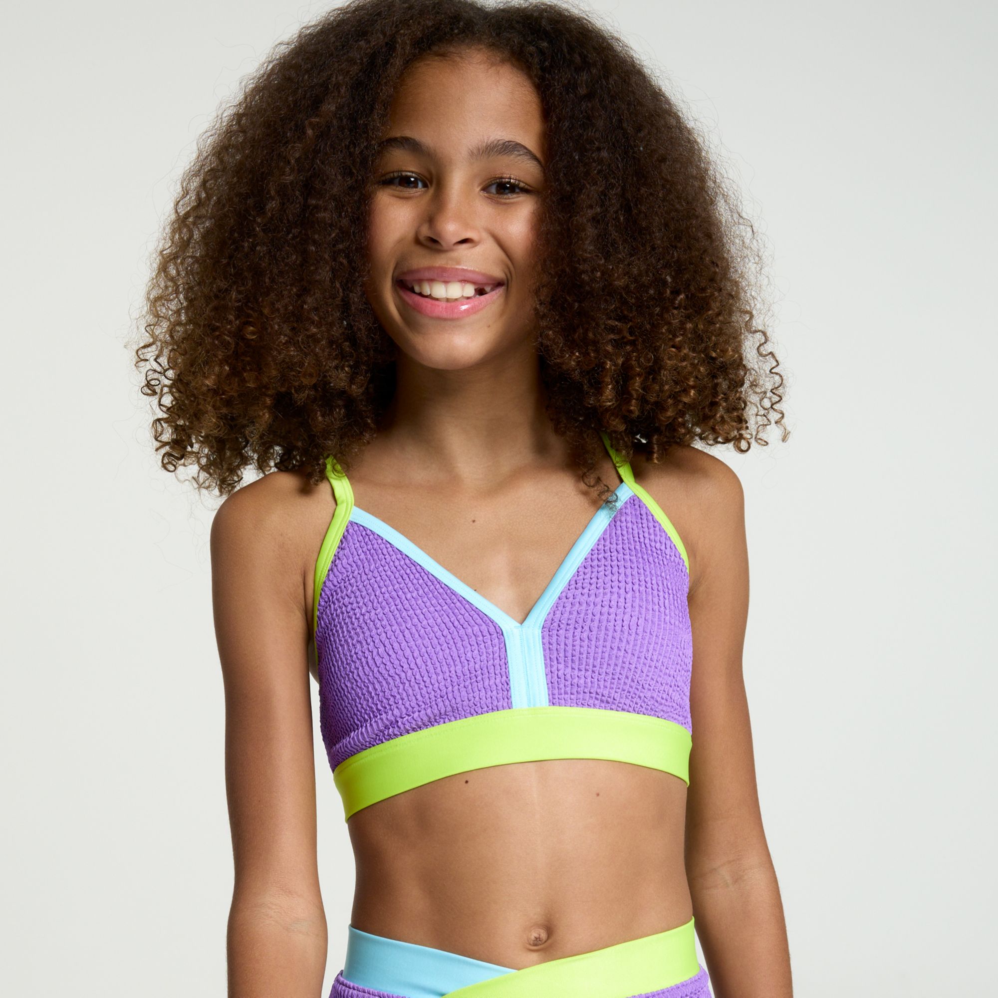 • Standard fit girls’ bikini top