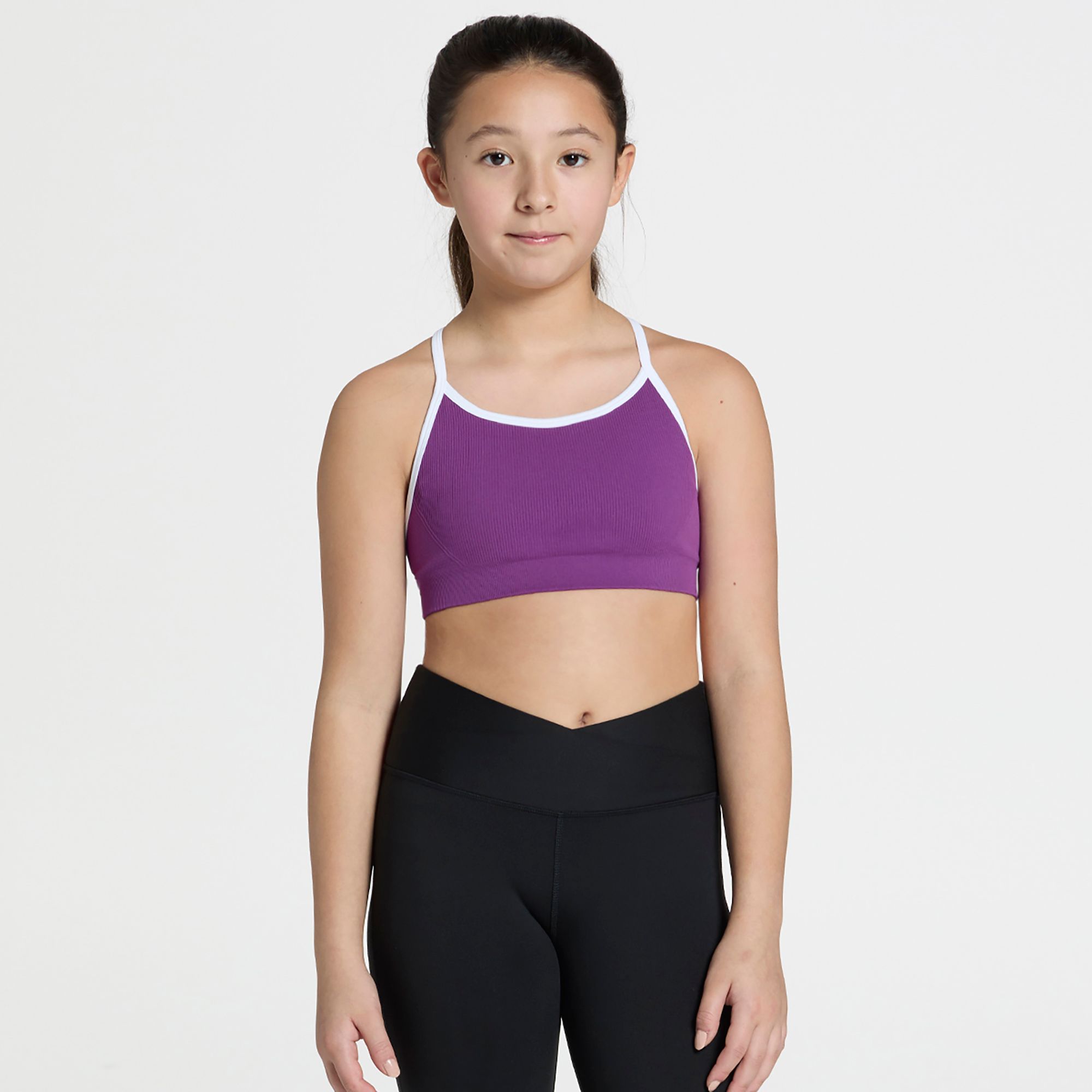• Fitted girls’ sports bra