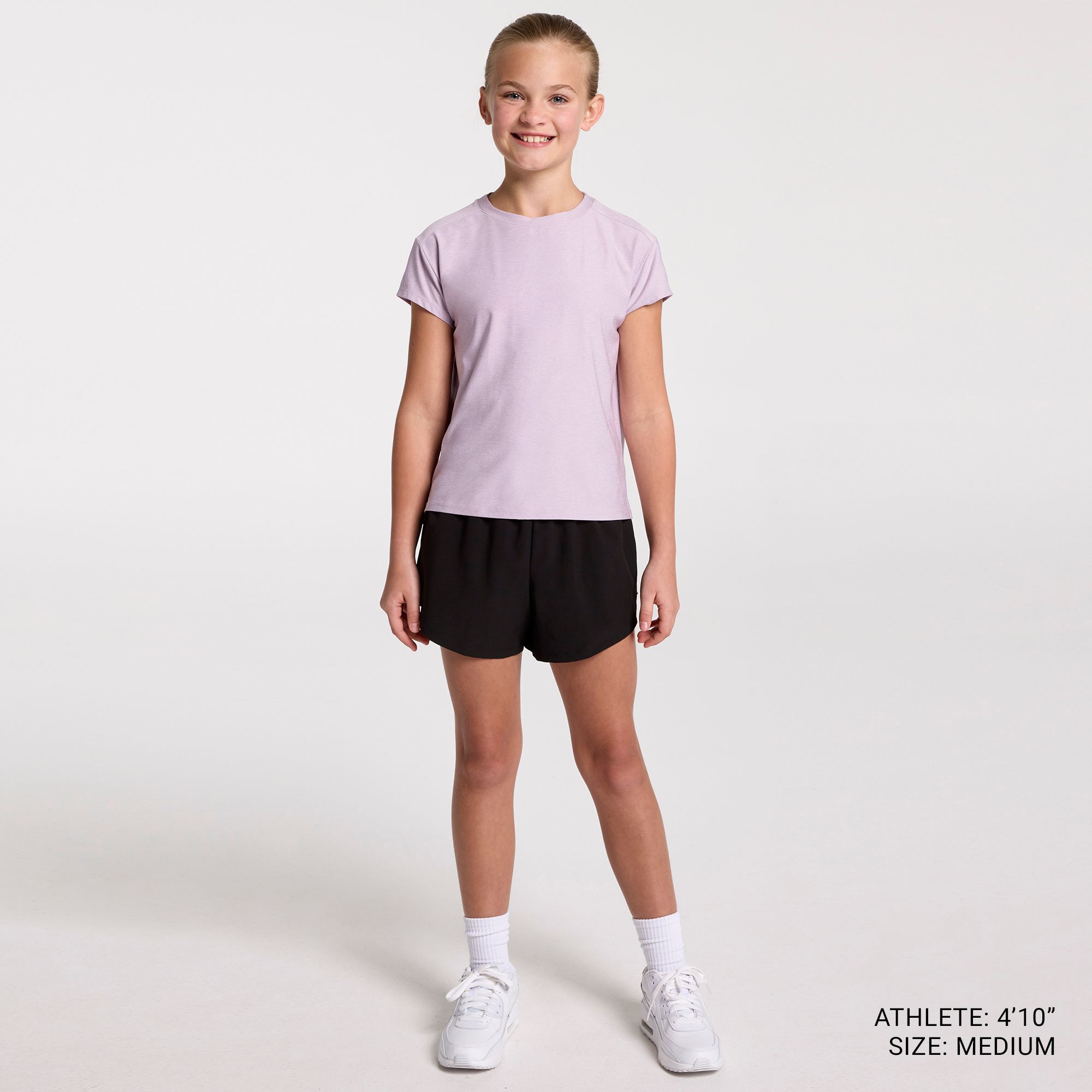 My daughter loves the feminine cut of this athletic shirt. It is not boxy like some other options, making it more comfortable and easier fit her to move in than other shirts.