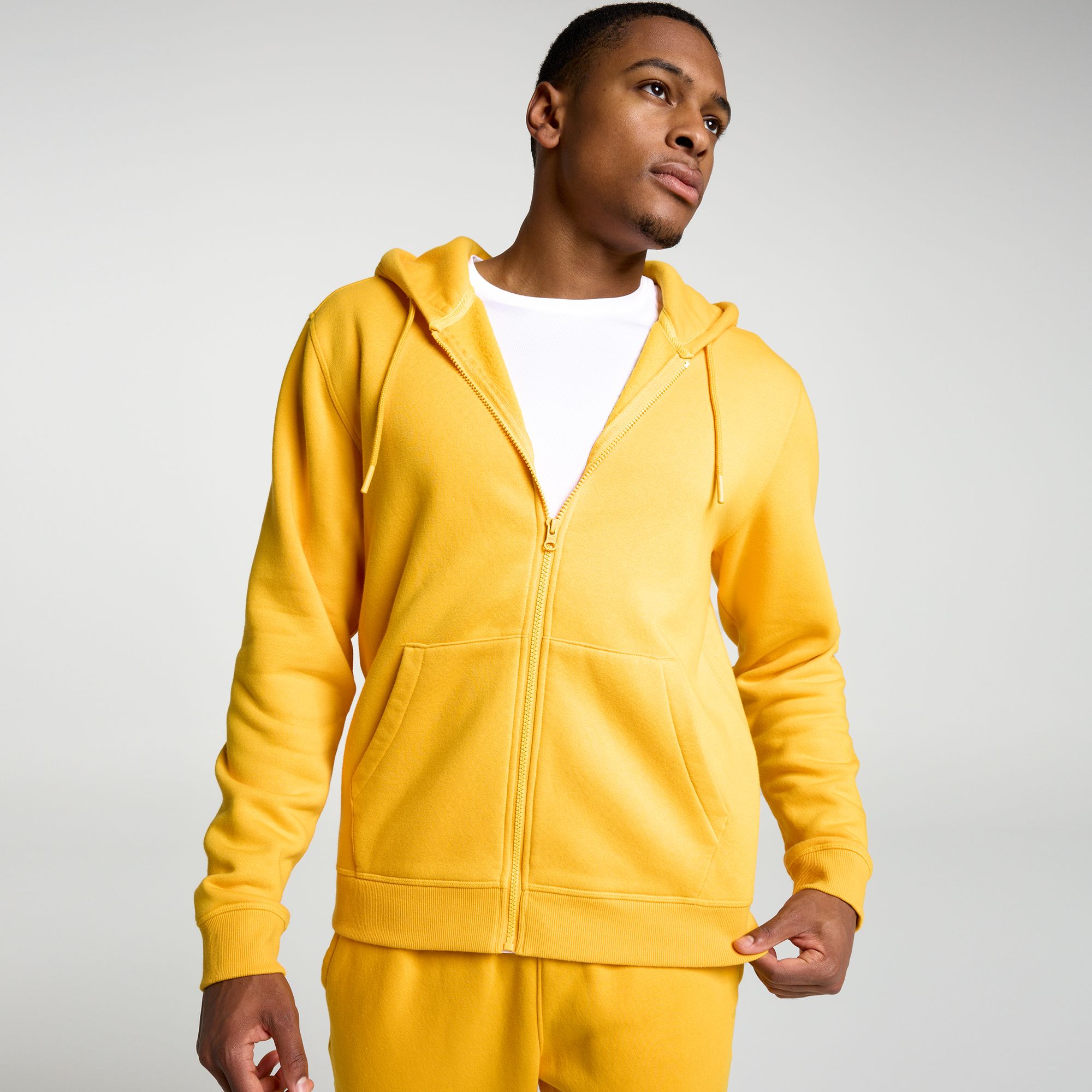 Zip up hoodie is good quality, soft material and warm on cool days. This one is gray and goes well with jeans or shorts. When laundered it doesn’t shrink and doesn’t wrinkle. Hand pockets are roomy and holds personal items comfortably.