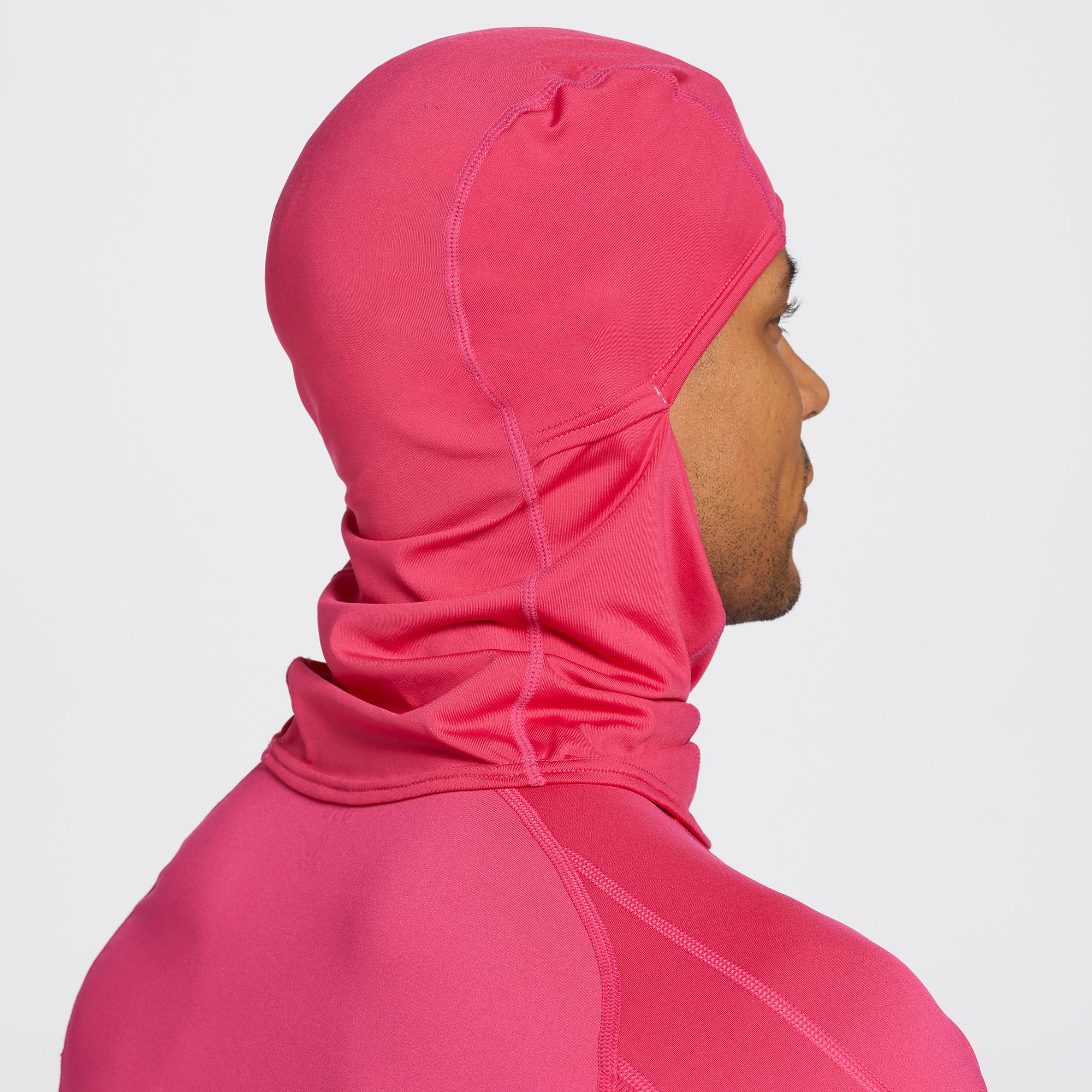 I bought this to wear under my ski helmet, it fits well under the helmet but the face mask slides down.