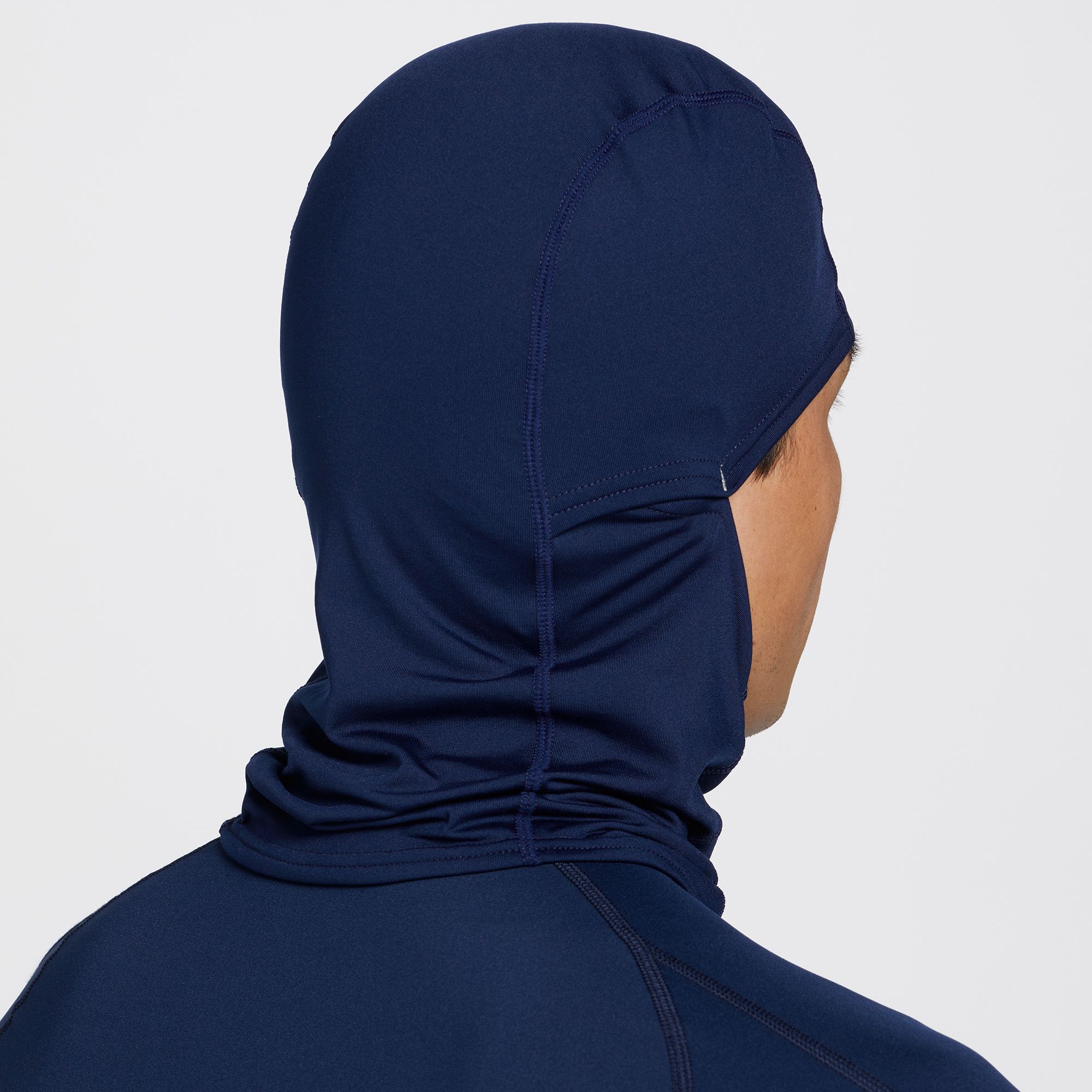 I bought this to wear under my ski helmet, it fits well under the helmet but the face mask slides down.