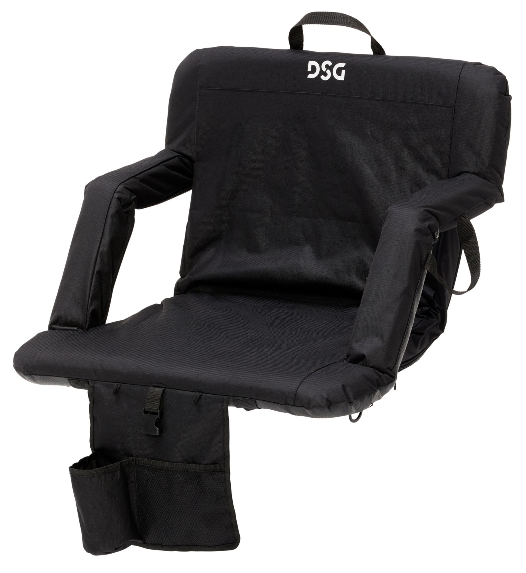 Experience ultimate comfort at your next outdoor event with our oversized 5-position stadium seat. Designed for maximum relaxation, this seat features a ratcheting frame that allows you to adjust the backrest to five reclining positions, ensuring you find the perfect angle whether you're cheering on your team or enjoying a concert. The padded seat and armrests provide added support, while the coated anti-slip base, complete with bleacher attachment straps, keeps you secure and stable no matter where you sit.
