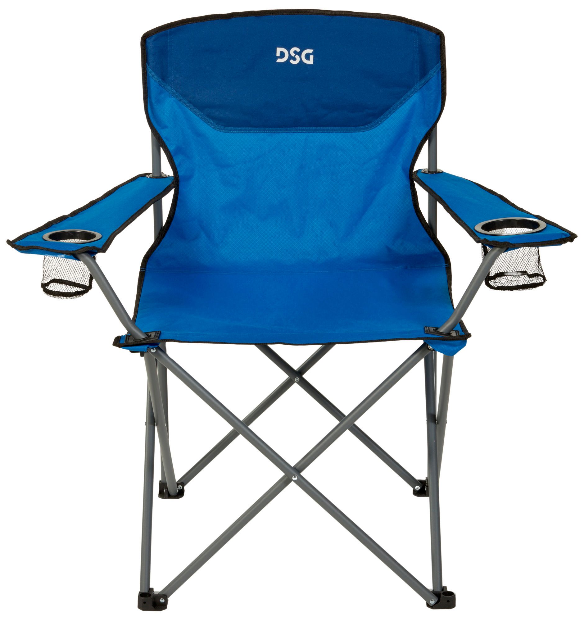 Enjoy unmatched comfort and convenience with the DSG Oversized Folding Chair. Designed with extra space and two oversized cup holders, this chair ensures you can relax with your favorite drink always within reach. Its collapsible design and included carry bag with straps make it effortlessly portable, perfect for tailgating, camping, or any outdoor event.