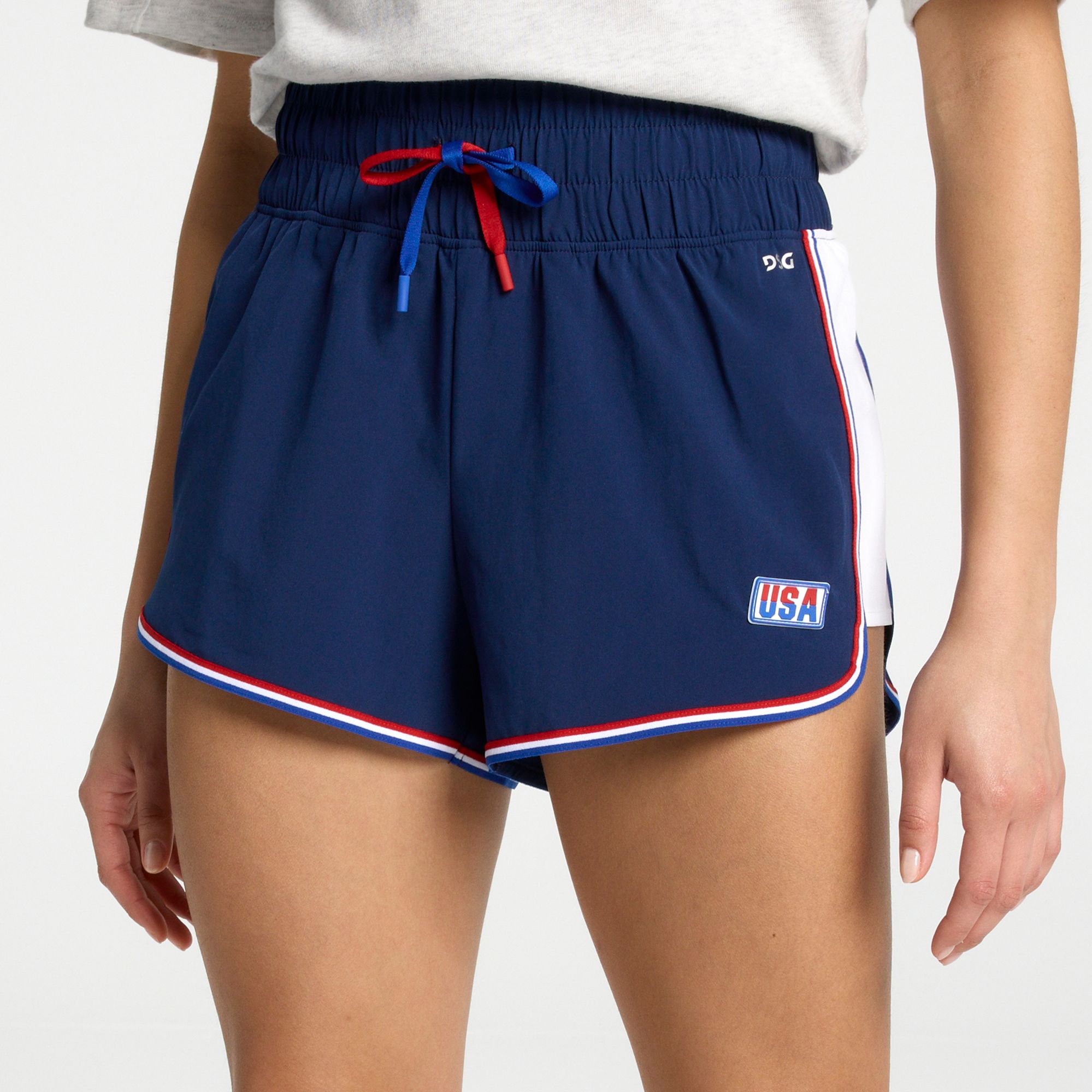 Elevate your active wardrobe with the DSG Women's USA High Rise 3'' Stride Shorts. Designed for movement and comfort, these shorts feature lightweight, stretchy Stride fabric and a built-in brief for extra support. With moisture-wicking technology and a high-rise fit that sits above the natural waist, they're perfect for any workout or casual outing.
