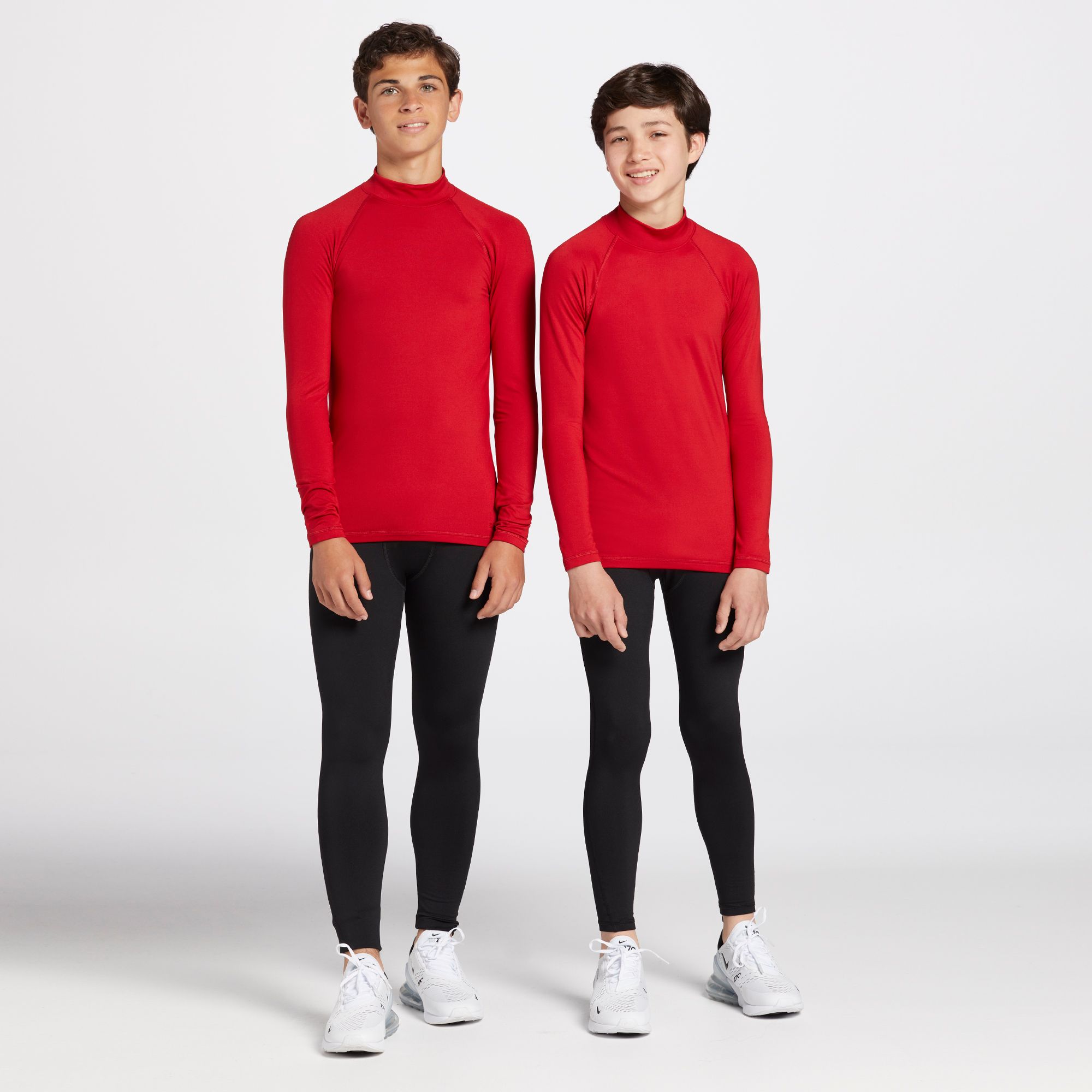 Designed for young athletes, this compression fit shirt offers a mock neck design for added coverage and long sleeves to keep them warm during colder days. Crafted with moisture-wicking fabric and UV protection, it ensures they stay dry, comfortable, and shielded from the sun's harmful rays. Whether they're practicing or playing, this shirt is built to deliver optimal performance in cold weather conditions.
