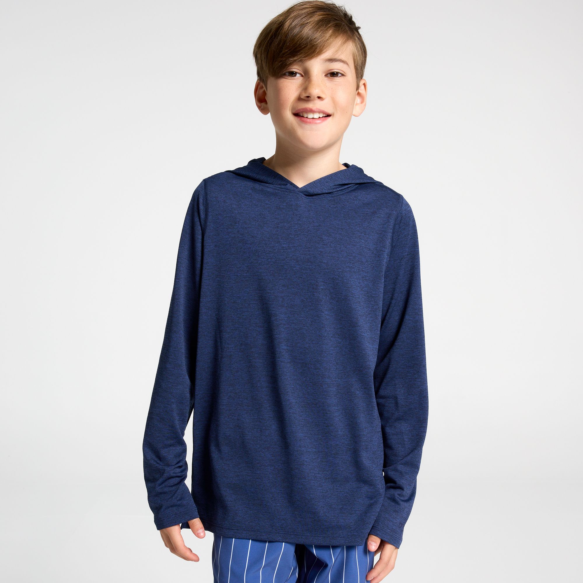 This kids’ hoodie is perfect for active days. Flat seams reduce chafing as they move and play, and our Movement fabric provides a lightweight feel that keeps them comfortable all day long. Moisture-wicking technology helps keep their skin dry while UV protection shields them from the sun's harmful rays.