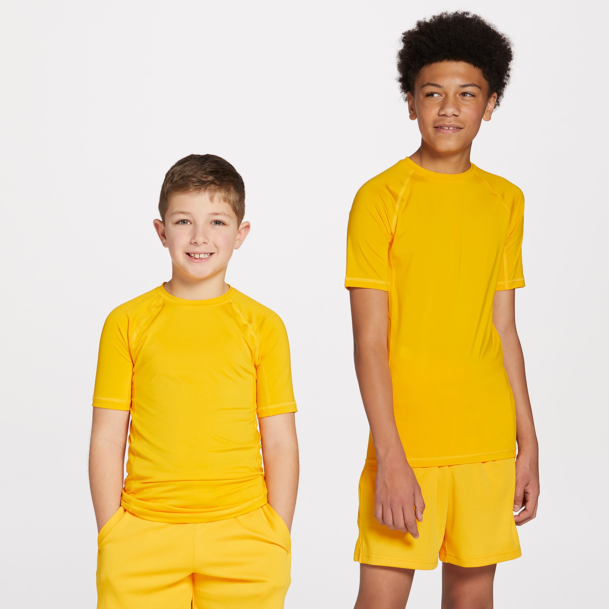 Crafted for young athletes, this DSG Youth Short Sleeve Compression T-Shirt features a compression fit with mesh paneling for strategic breathability. The classic crewneck design and short sleeves offer an enhanced range of motion, while moisture-wicking fabric and UV protection keep them dry and safe from the sun's harmful rays. Ideal for warm weather and casual wear, this shirt is a versatile addition to any active kid's wardrobe.