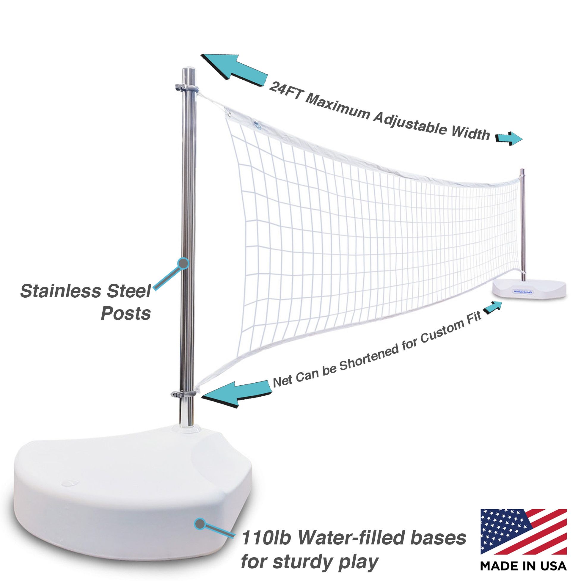 - STAINLESS STEEL POSTS (NOT PLASTIC): Other pool volleyball units use plastic posts, the WaterVolly Stainless uses 100% weather-resistant stainless steel for extreme longevity