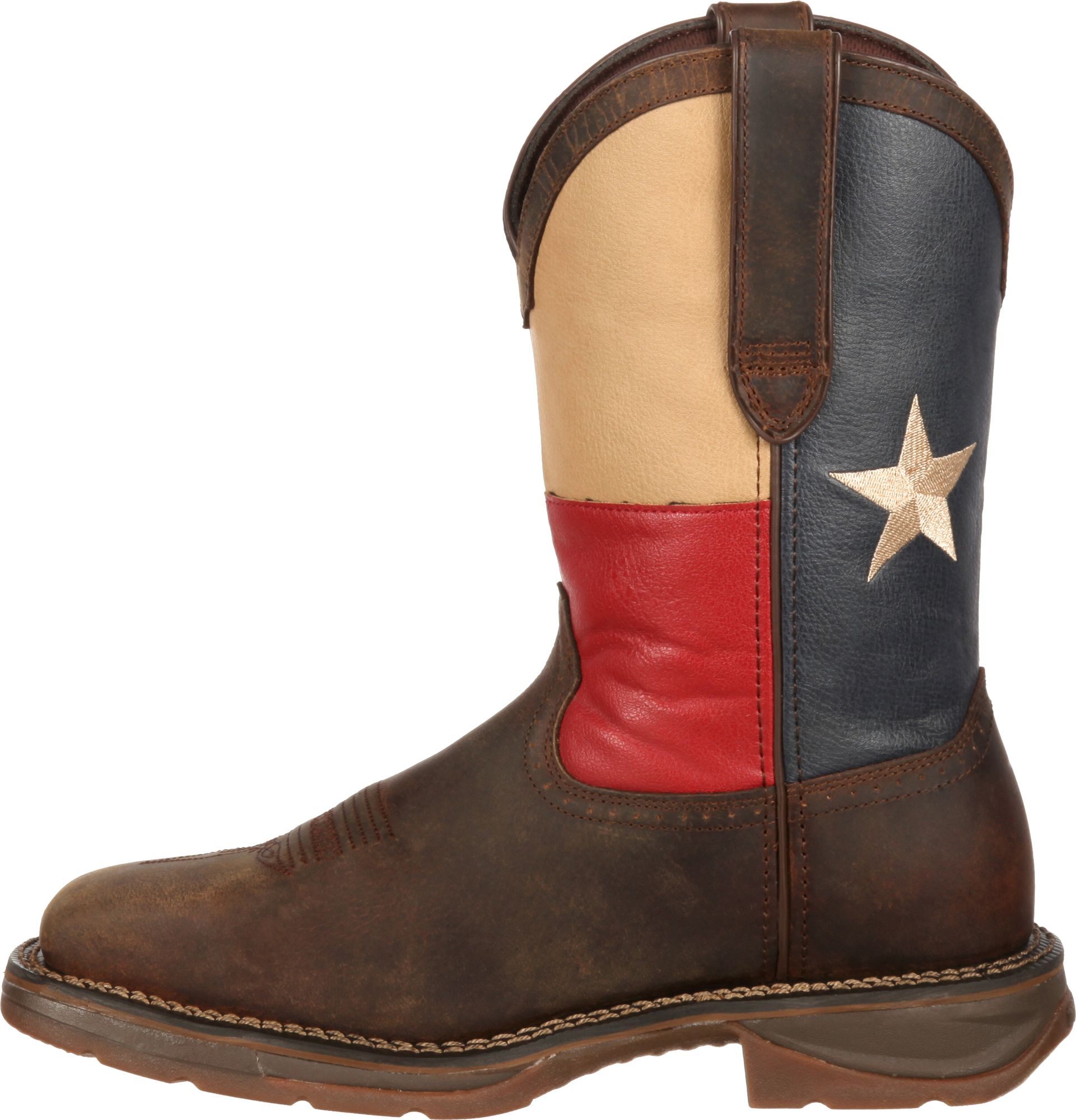 Show your love for the lone star state even at work with the Durango® Rebel Texas Flag 11” Waterproof Steel Toe work boot. The tall work boot features a unique, Texas flag pattern upper that is crafted of full-grain leather with an embroidered star. Electric Hazard Standard ensures that this boot is regulated for all work environments, while the waterproof material promises to keep your feet dry during wet conditions.