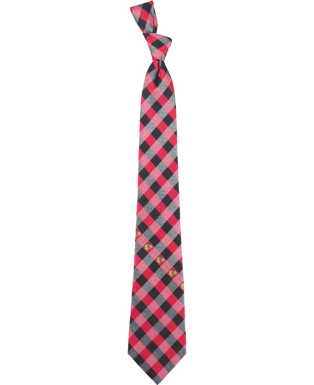 Send out your checking line this season with the Eagles Wings® Chicago Blackhawks Check Necktie. The contrasting, team-color stripes complete a stylish design to keep you in high fashion for every boardroom meeting and rival beating. A polyester base offers a comfortable, durable feel while the detailed lower stripe logos complete your team allegiance. Hop the boards next game with the Chicago Blackhawks Check Necktie.