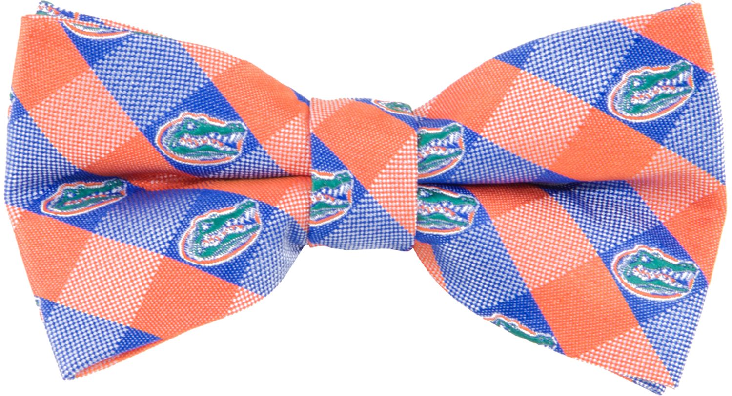 Make the perfect addition to your game day outfit when you wear the Eagles Wings® Florida Gators Checkered Bow Tie. Featuring a repeated Florida logo and a team-colored checkered pattern, this tie screams Blue and Orange. This convenient to wear pre-tied tie is made of 100% woven polyester for quality and durability. The adjustable neck band ensures a comfortable fit all game long.