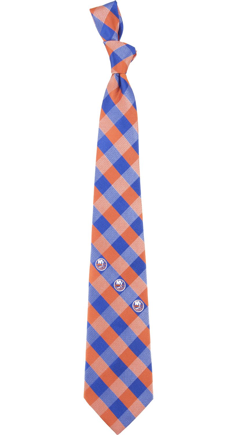 Send out your checking line this season with the Eagles Wings® New York Islanders Check Necktie. The contrasting, team-color stripes complete a stylish design to keep you in high fashion for every boardroom meeting and rival beating. A polyester base offers a comfortable, durable feel while the detailed lower stripe logos complete your team allegiance. Hop the boards next game with the New York Islanders Check Necktie.