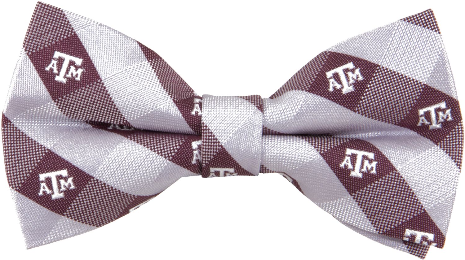On game day, put on the Eagles Wings® Texas A&M Aggies Checkered Bow Tie to represent your team. The bow tie features a team-colored, checkered design with the TAMU logo spread across the tie. An adjustable neck band delivers the perfect fit for comfort that lasts quarter after quarter. Its 1 woven polyester fabric offers quality and durability so this bow tie lasts every season just like your Aggies pride.