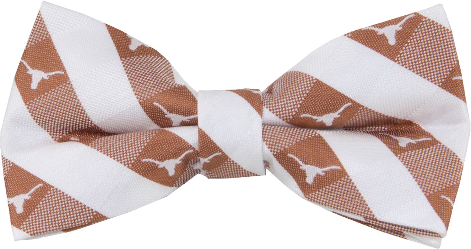 On game day, put on the Eagles Wings® Texas Longhorns Checkered Bow Tie to represent your team. The bow tie features a team-colored, checkered design with the UT logo spread across the tie. An adjustable neck band delivers the perfect fit for comfort that lasts quarter after quarter. Its 1 woven polyester fabric offers quality and durability so this bow tie lasts every season just like your Longhorns pride.