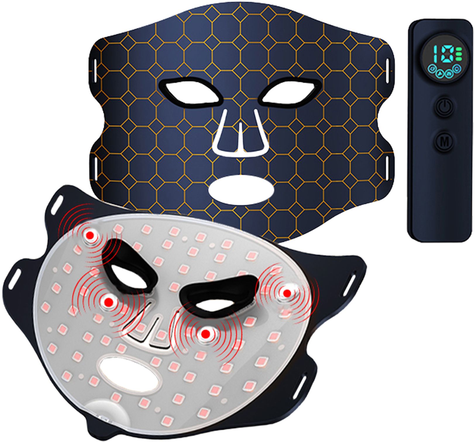 Experience the most powerful red light therapy mask of it's kind, featuring 55 high-intensity LEDs—visibly improve skin tone, texture, and elasticity. Designed for comfort and convenience, the soft, skin-friendly silicone contours perfectly to your face, while the built-in eye shield lets you multitask without strain.