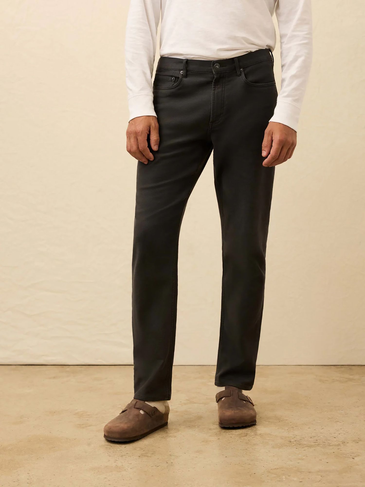Faherty's Workhorse. Their Go-To. The first pant we're pulling off the rack on any given day of the week. The Stretch Terry 5-Pocket Pant is rugged and structured, best known for its authentic denim look with that signature Faherty HOLY $&*! comfort factor..