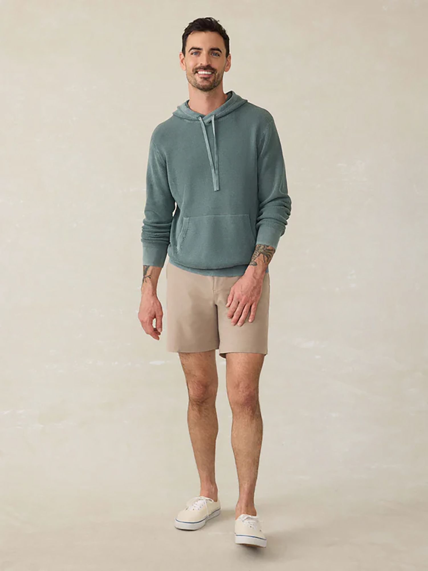 Designed as an easy- to-wear, transitional layer, this hoodie will be in your rotation all year round. Our cotton yarn is super soft but not overly warm and knit in an airy, waffle stitch giving the sweater dimension and texture. It's then garment-dyed and washed for a lived in, look and feel.