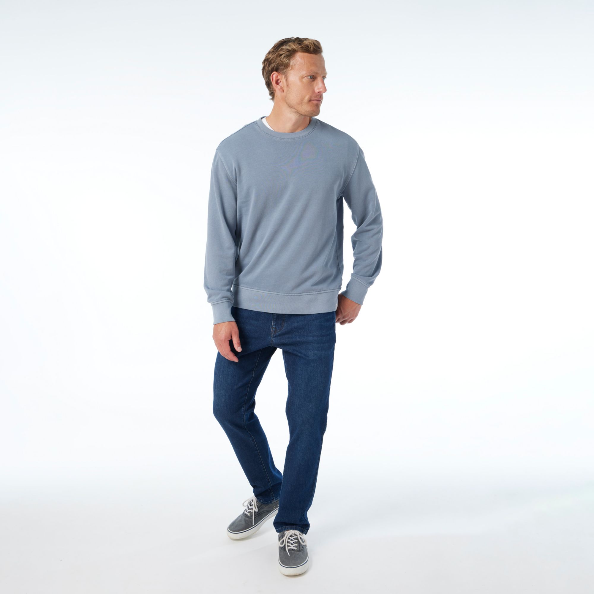 Inspired by a favorite well-worn sweatshirt passed down through the generations, this Vintage-Wash Saltaire Crewneck looks and feels like you’ve owned it forever. It’s made with a buttery-soft Saltaire fabric that blends organic cotton with recycled plastic bottles. With a relaxed fit and easy feel, it’s perfect for cool days or layering in transitional weather.