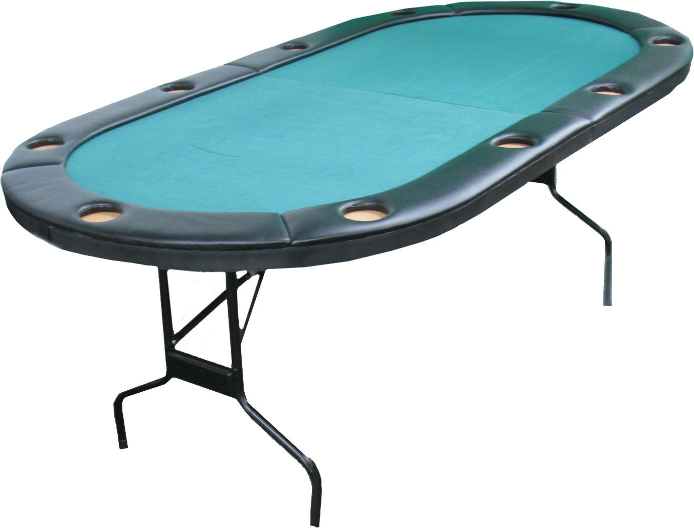 You’ll feel like a high roller when playing poker on the Fat Cat® Texas Hold ‘Em Poker Table. Featuring a water resistant cushioned rail along the sides, this 10-person Fat Cat® poker table looks like the ones in the casinos. Built-in drink holders give each player a convenient place to set their drink while checking their hand, and the felt on this poker table helps to prevent shifting.