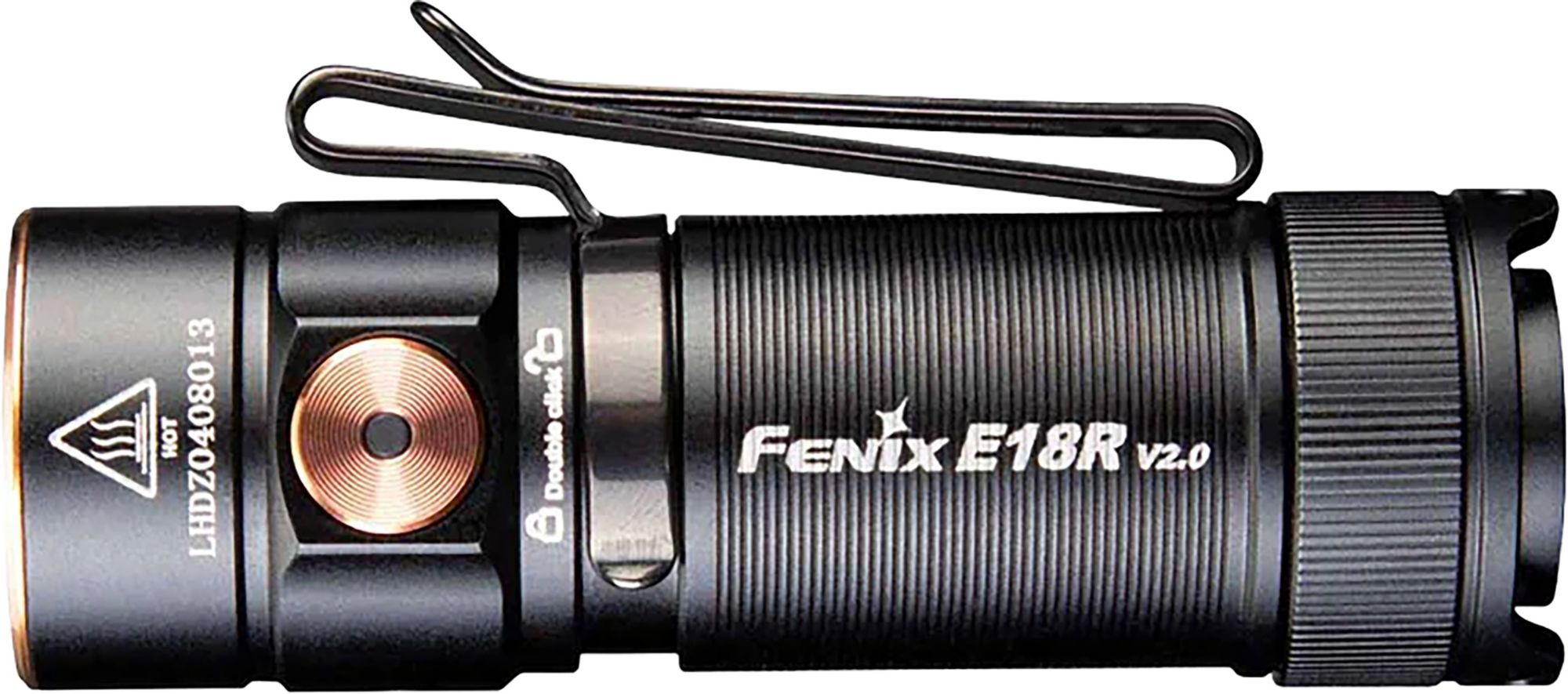 The Fenix E18R V2.0 is an ultra-compact EDC (every day carry) flashlight with outstanding performance for a flashlight this small. Powered by one included 16340 li-ion battery, the E18R V2.0 emits a maximum of 1200 lumens a distance of 479ft (146m). The single side switch (no tail switch) controls six lighting modes including a moonlight mode for up-close tasks. Recharge the E18R V2.0 flashlight via its USB-C port when the battery level indicator indicates the battery is low. The E18R V2.0 is built tough with durable high-strength, oxidation-resistant aluminum and is waterproof underwater to 6.6ft (2m). Magnetic tail and a two-way body clip round out the features of this awesome little EDC flashlight.