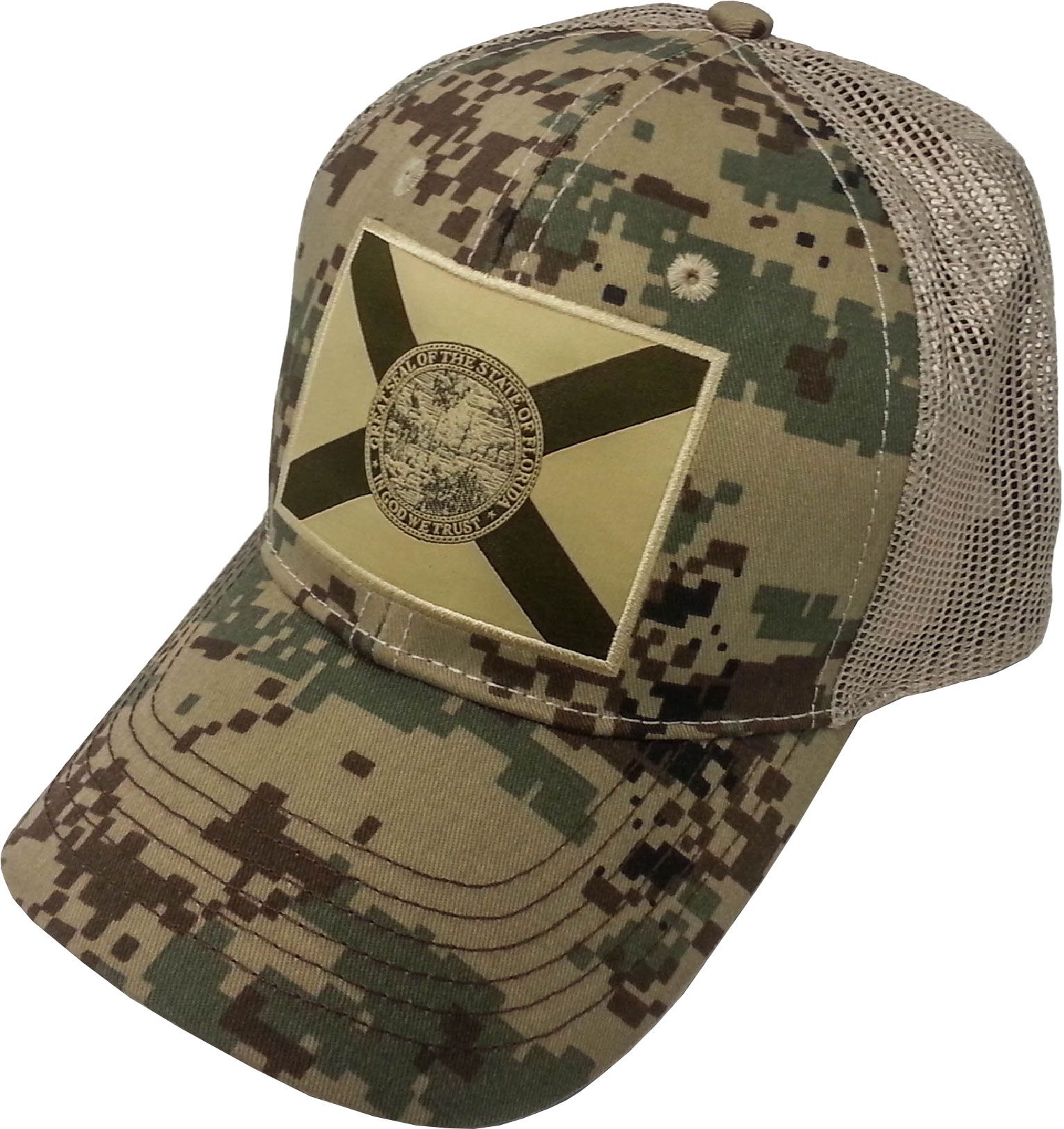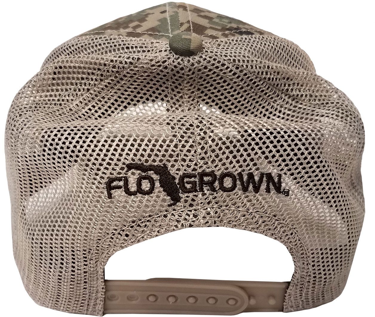 Head out on an outdoor adventure in the FloGrown® Men’s Digital Camo Patch Trucker Hat. The adjustable snapback closure provides a perfect fit while the mesh back and embroidered eyelets deliver breathability to keep you cool. The curved brim keeps the sun out of your eyes so you can focus on your catch of the day in the Digital Camo Patch Trucker Hat.