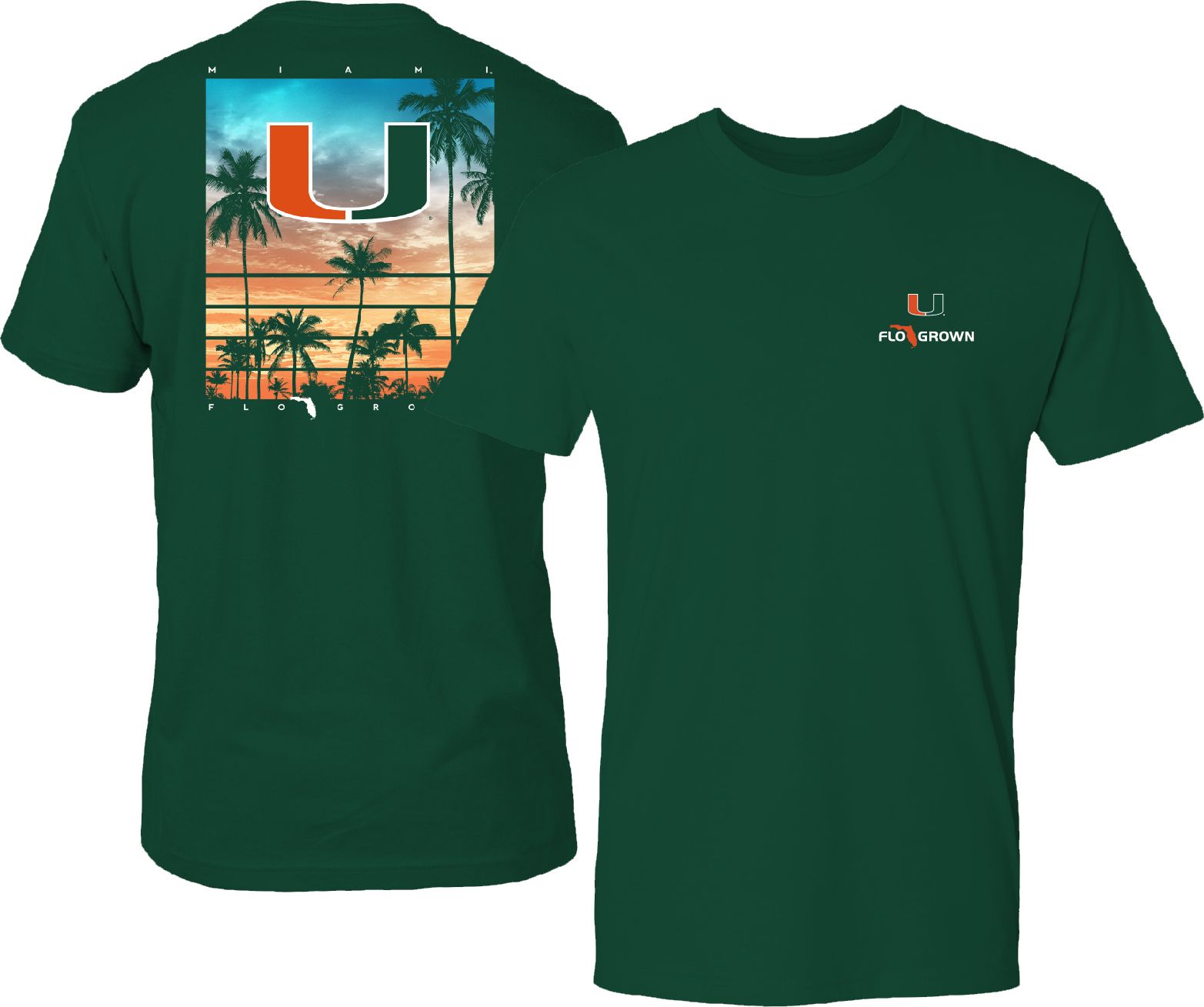 FloGrown Men's Miami Hurricanes Green Sunset Poster T-Shirt