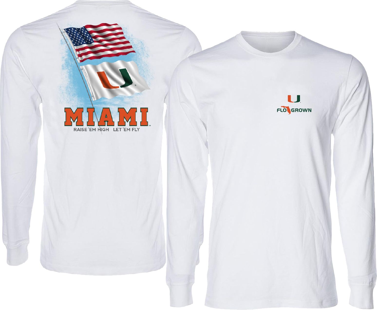 FloGrown Men's Miami Hurricanes White Fly 'Em High Long Sleeve T-Shirt