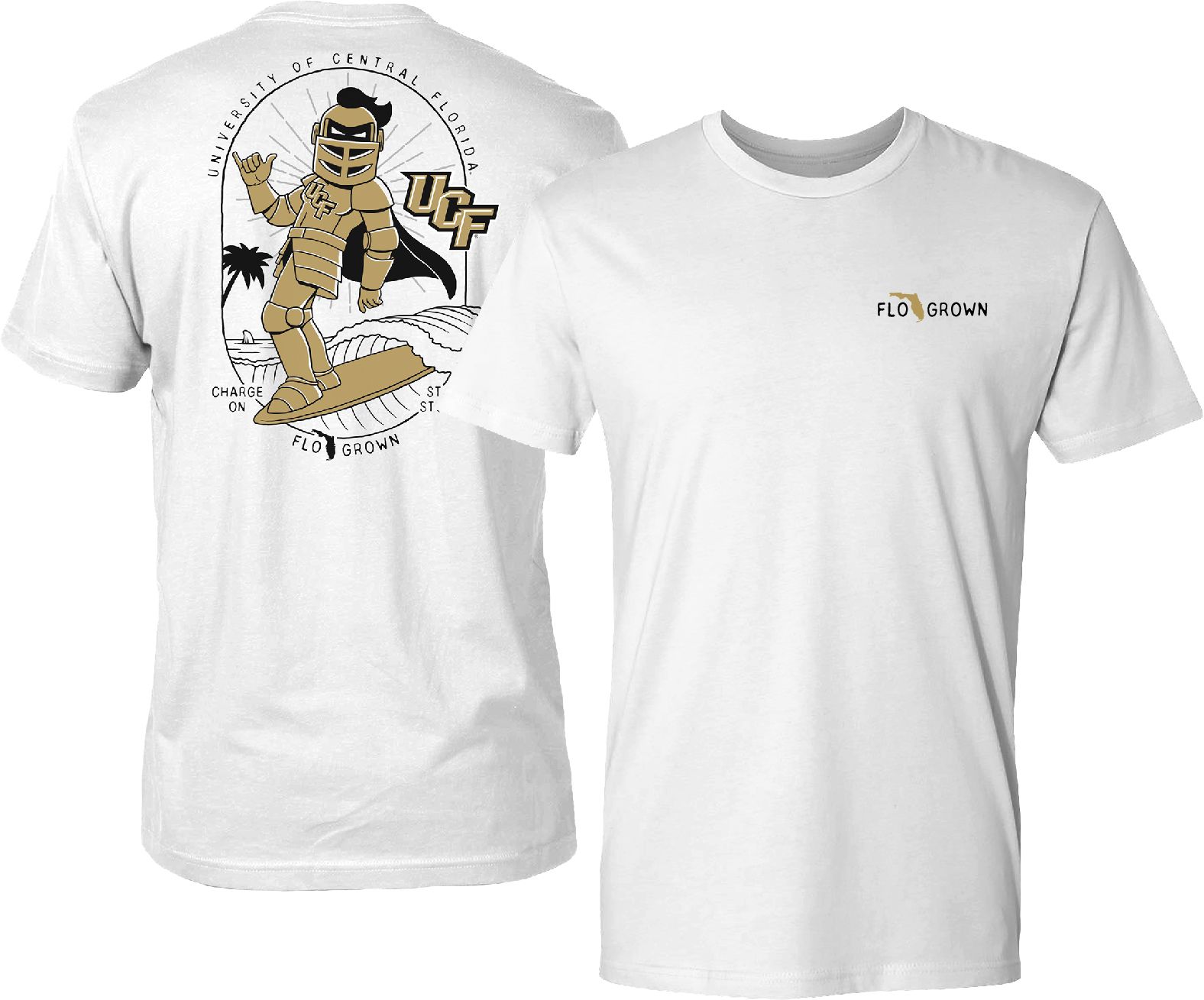 FloGrown Men's UCF Knights Knightro Surfer White T-Shirt