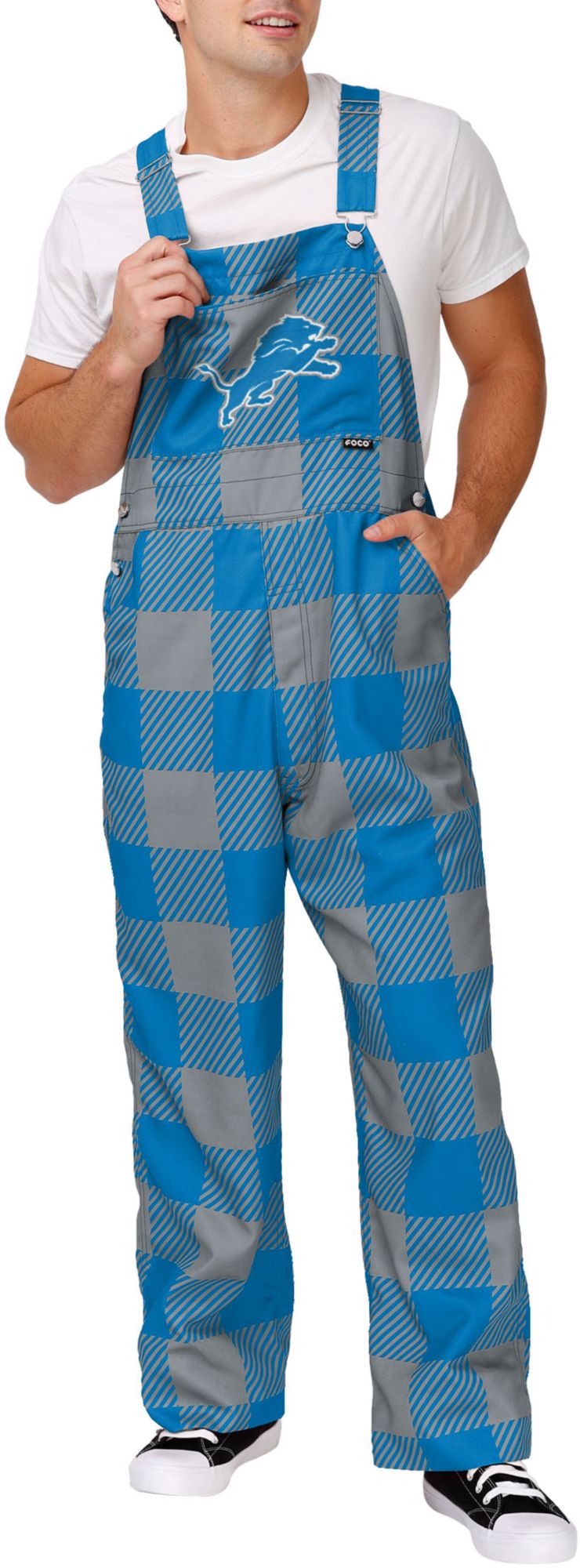FOCO Adult Detroit Lions Plaid Overalls