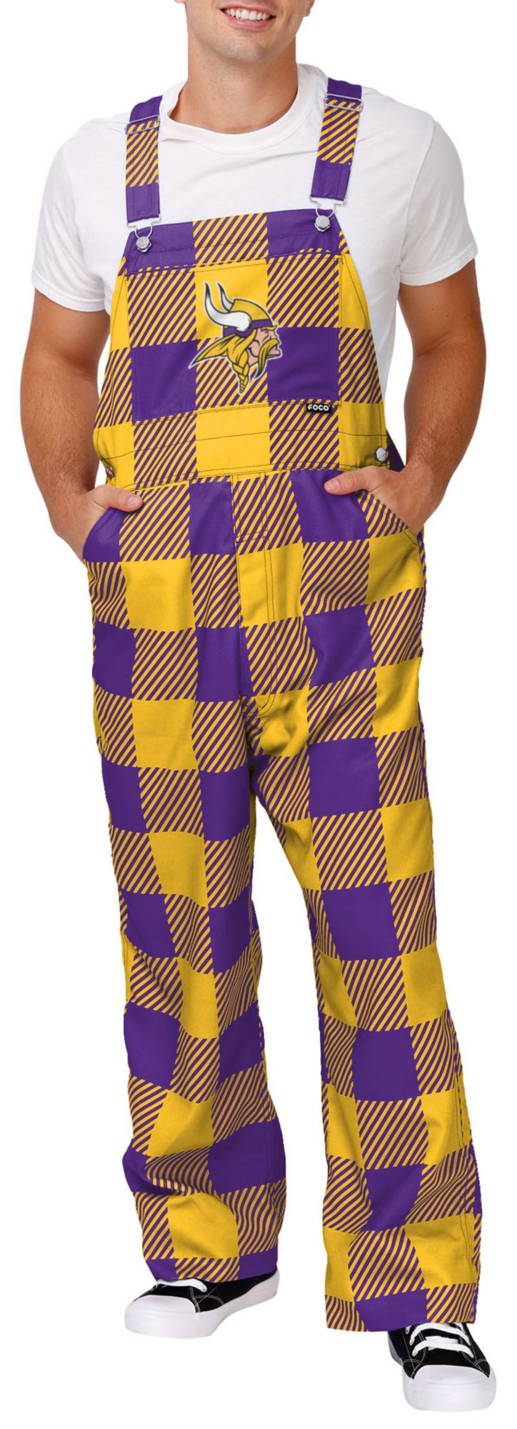 FOCO Men's Minnesota Vikings Plaid Overalls