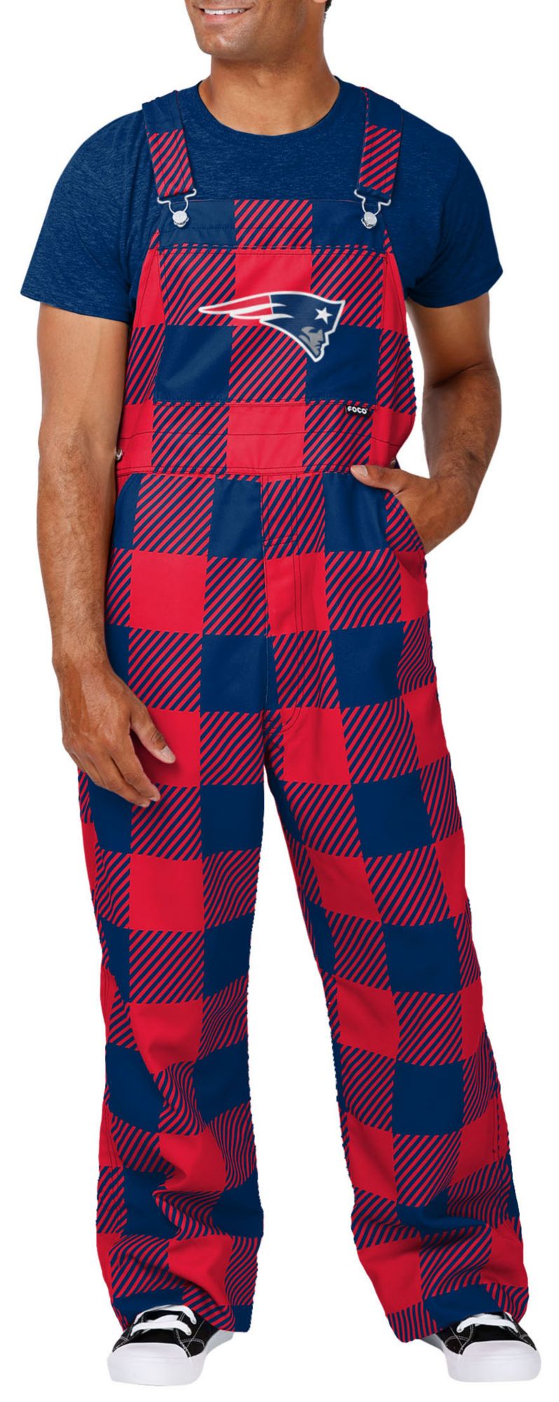 FOCO Men's New England Patriots Plaid Overalls