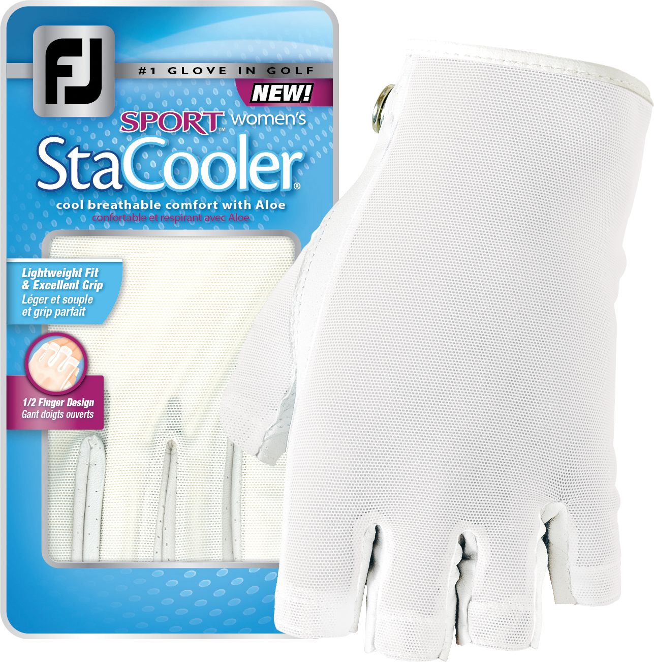 Maximize comfort and performance during warm-weather rounds with the 2014 StaCooler Sport Golf Glove. Engineered for a customized fit, this glove features a soft aloe vera leather palm and breathable PowerNet mesh across the knuckles for superior feel. Shortened finger openings allow added ventilation and accommodate golfers with longer fingernails. A removable ball marker gives the FootJoy® 2014 StaCooler Golf Glove remarkable functionality.