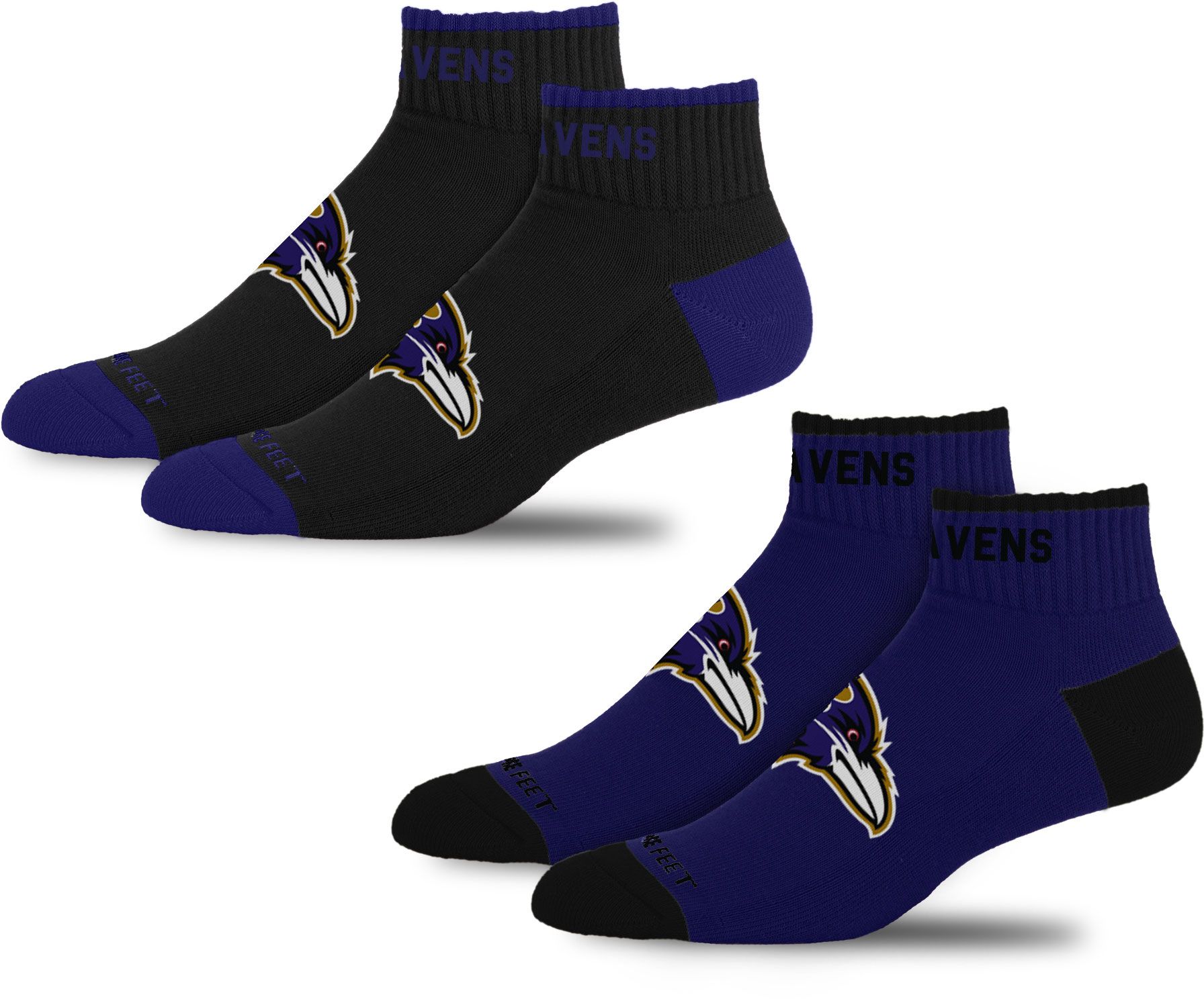 For Bare Feet Adult Baltimore Ravens Front & Center 2 Pack Socks