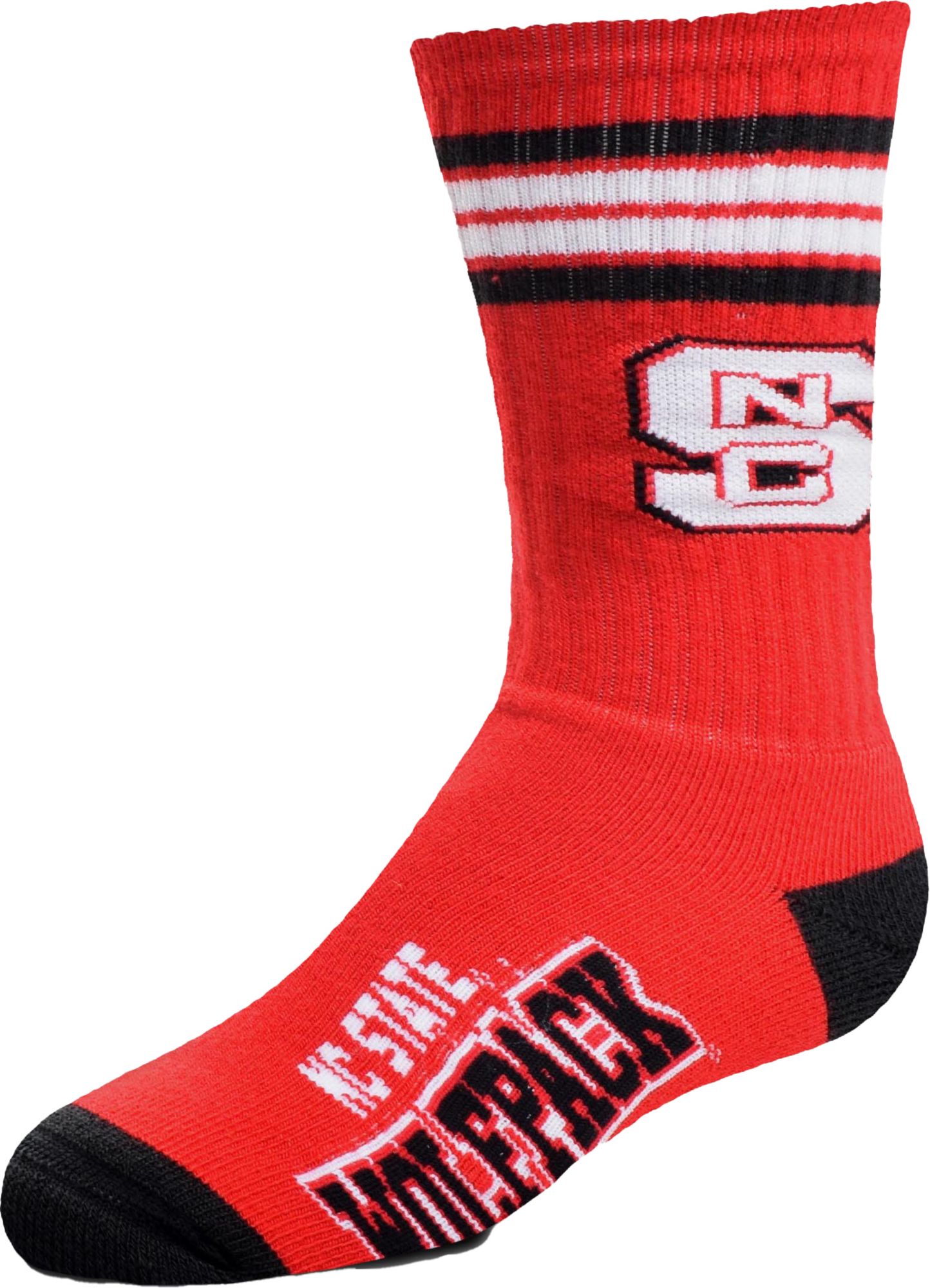 For Bare Feet Youth NC State Wolfpack 4-Stripe Deuce Socks