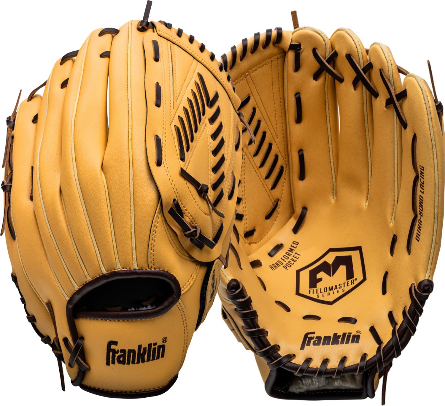 Franklin Sports' Field Master Baseball Glove is designed to be the perfect glove for players of all ages. Made from a durable synthetic leather, this glove is built with a contoured wrist area engineered to maximize flexibility while maintaining superior support. Plus, the synthetic leather comes with a pre-formed pocket which is designed to break in exactly to your liking quickly and easily. With sizes and webs available for every position, there's a Field Master for every player. So whether you're playing baseball, softball, or teeball, the Field Master is the perfect glove for you. Grab yours and get in the game today!