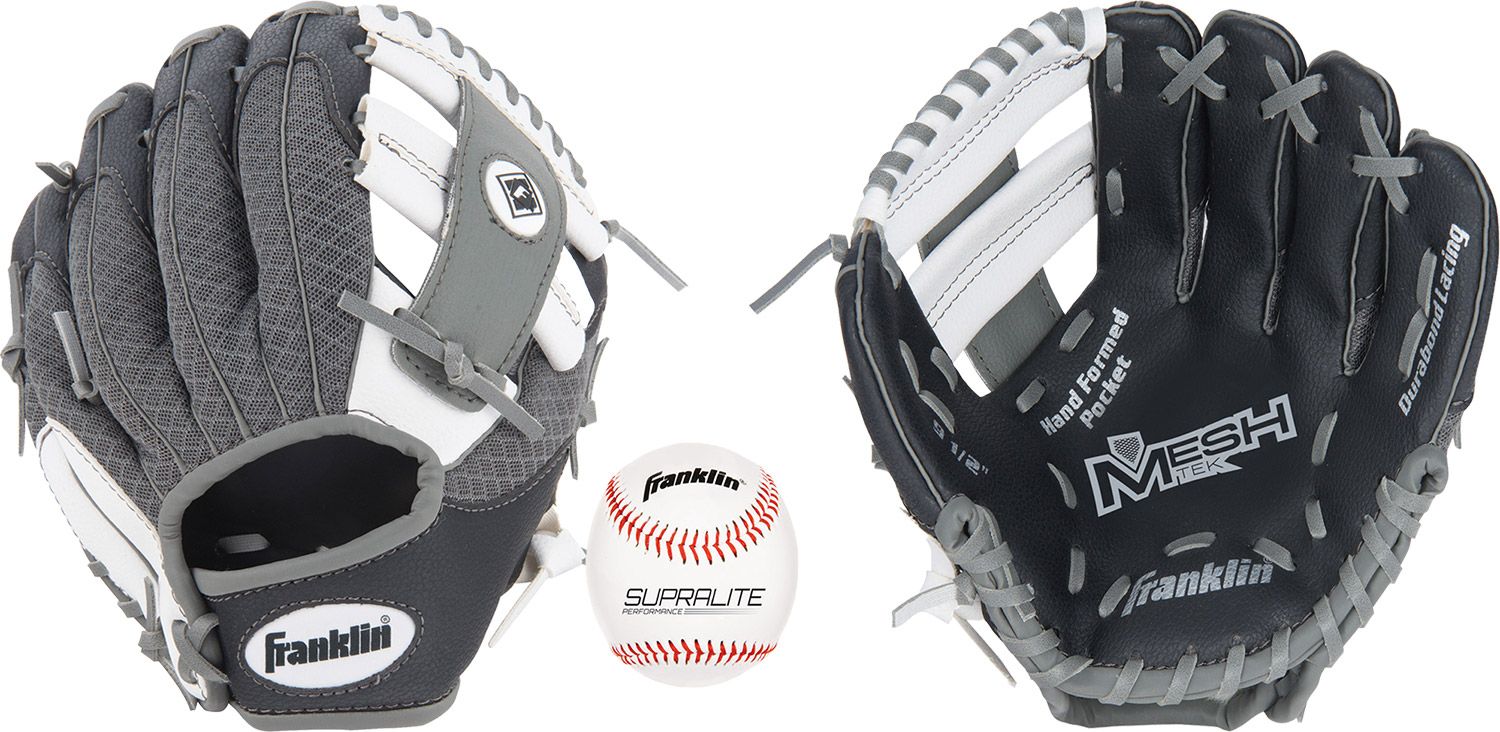 The Franklin®: 9.5” T-Ball Recreational Glove with Ball features a lightweight technical mesh shell construction that makes it soft and easy for first time players to squeeze the glove closed.